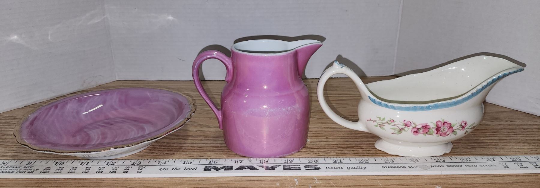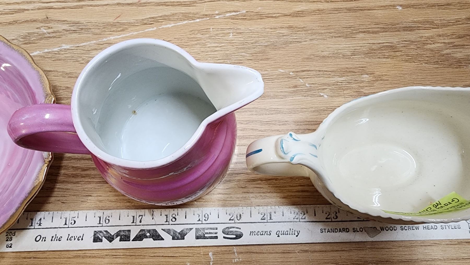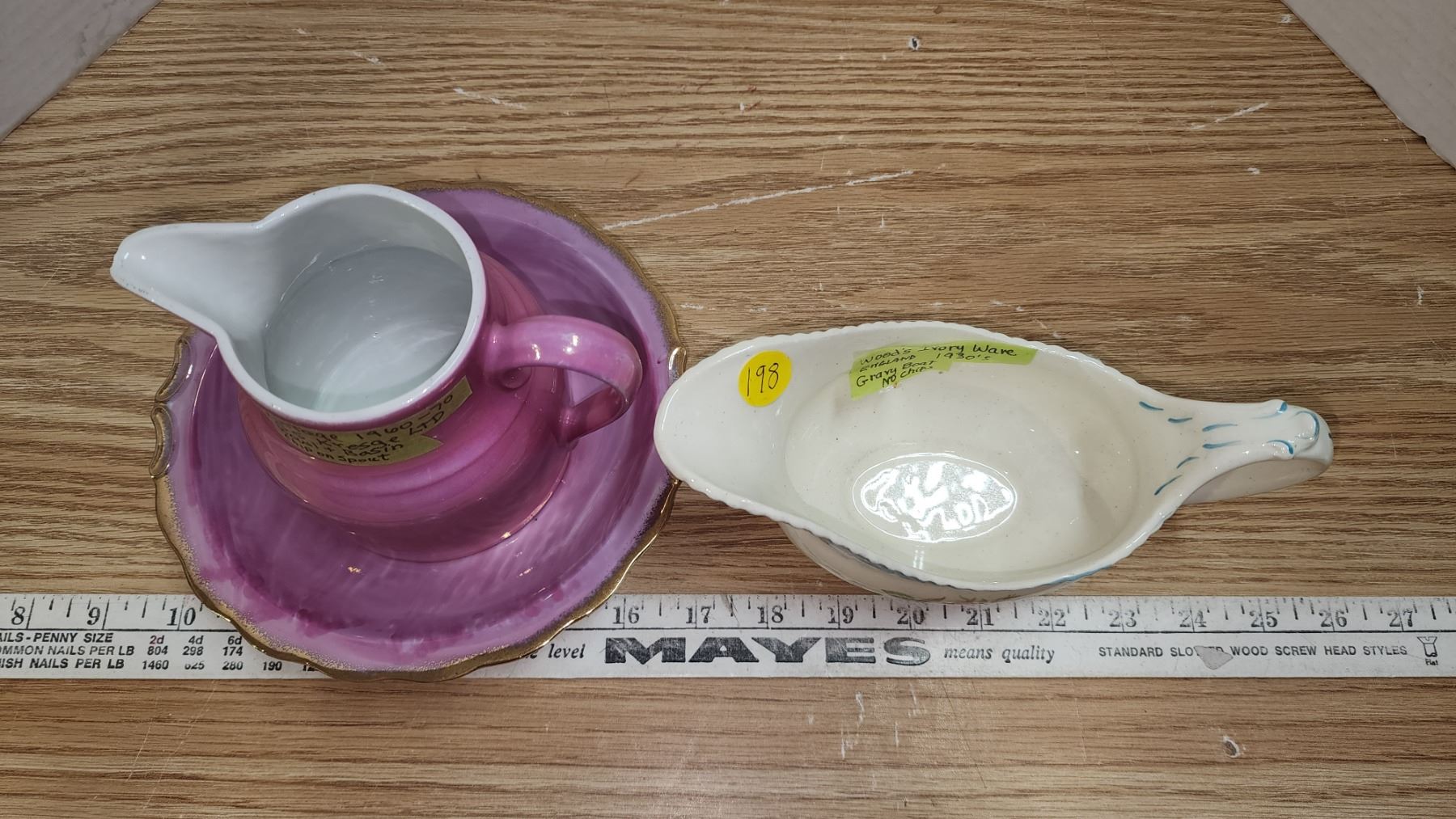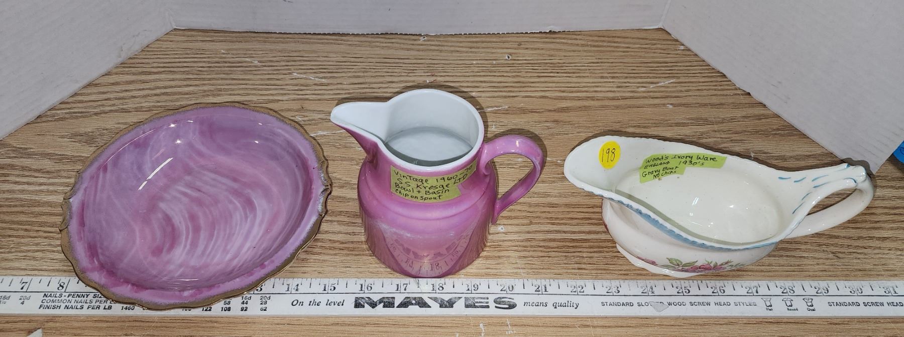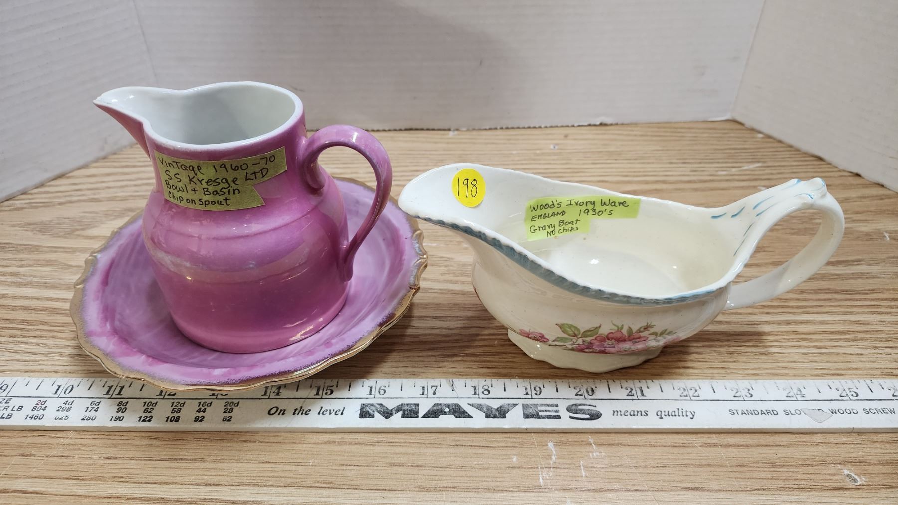 Bowl & Basin 1960's SS Kresge Ltd. chip on spout; & Woods Eng Ivory Ware Gravy 1930's