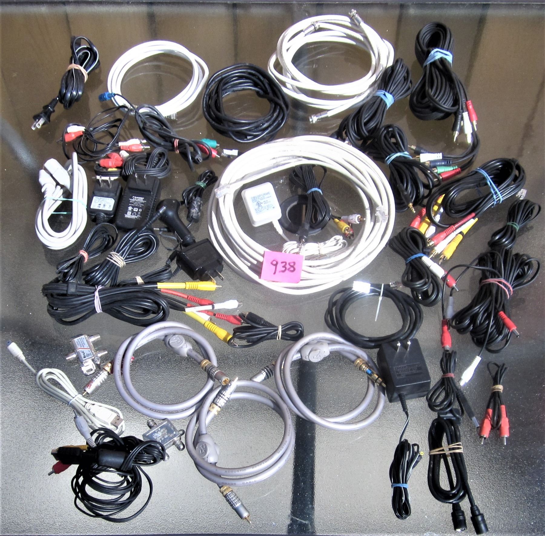 Box asst USB cables, chargers, wire, coaxle etc.