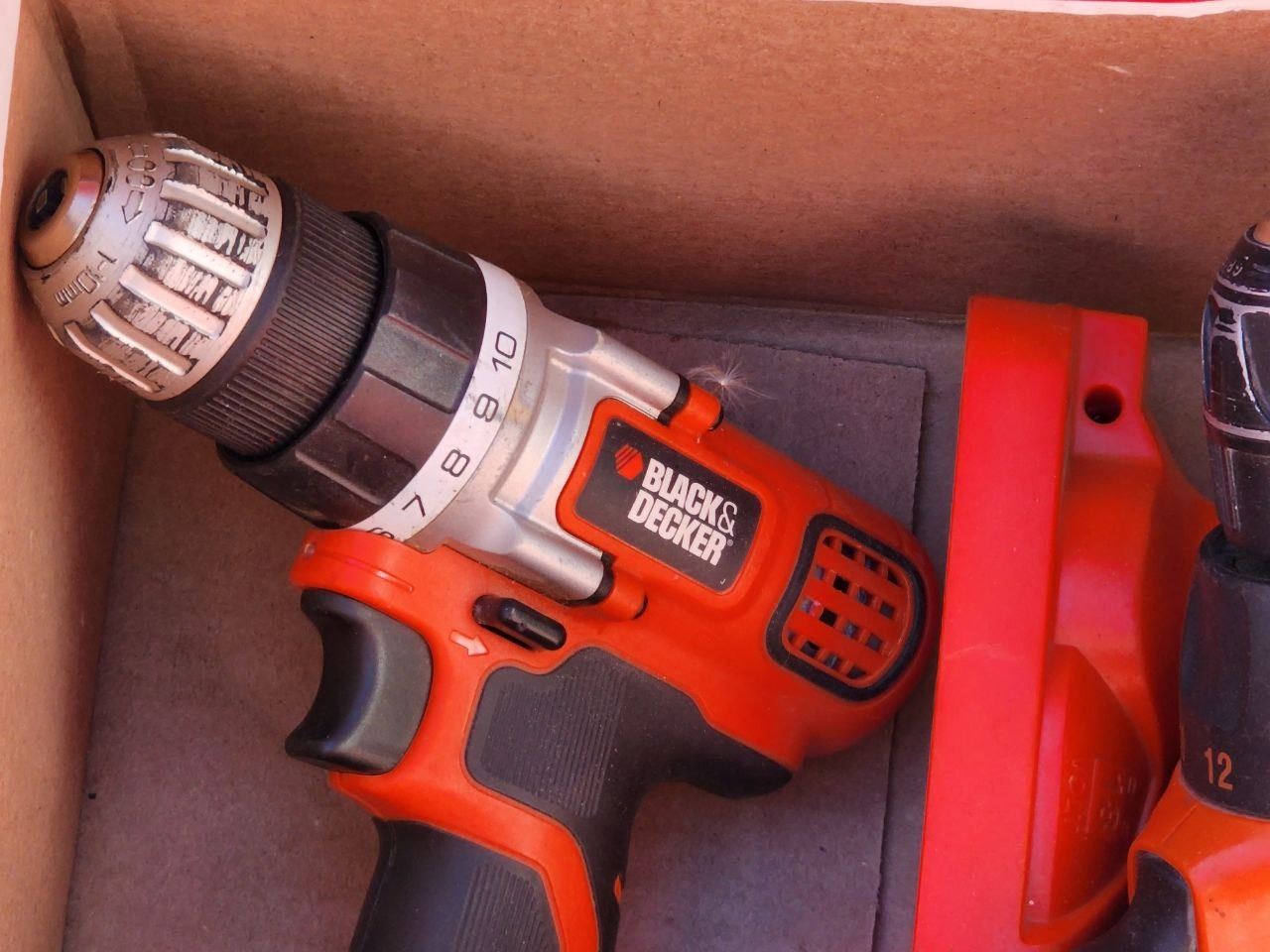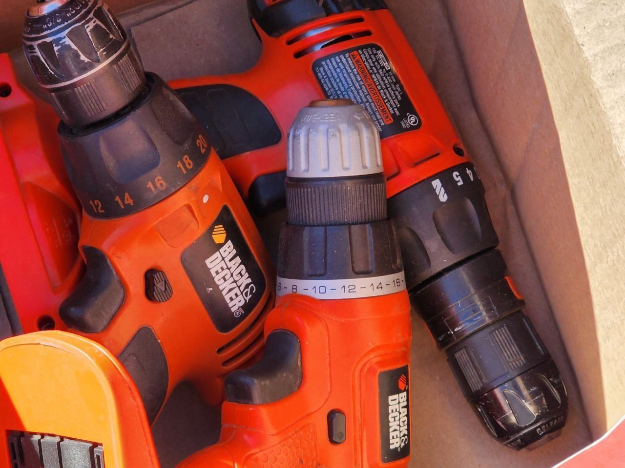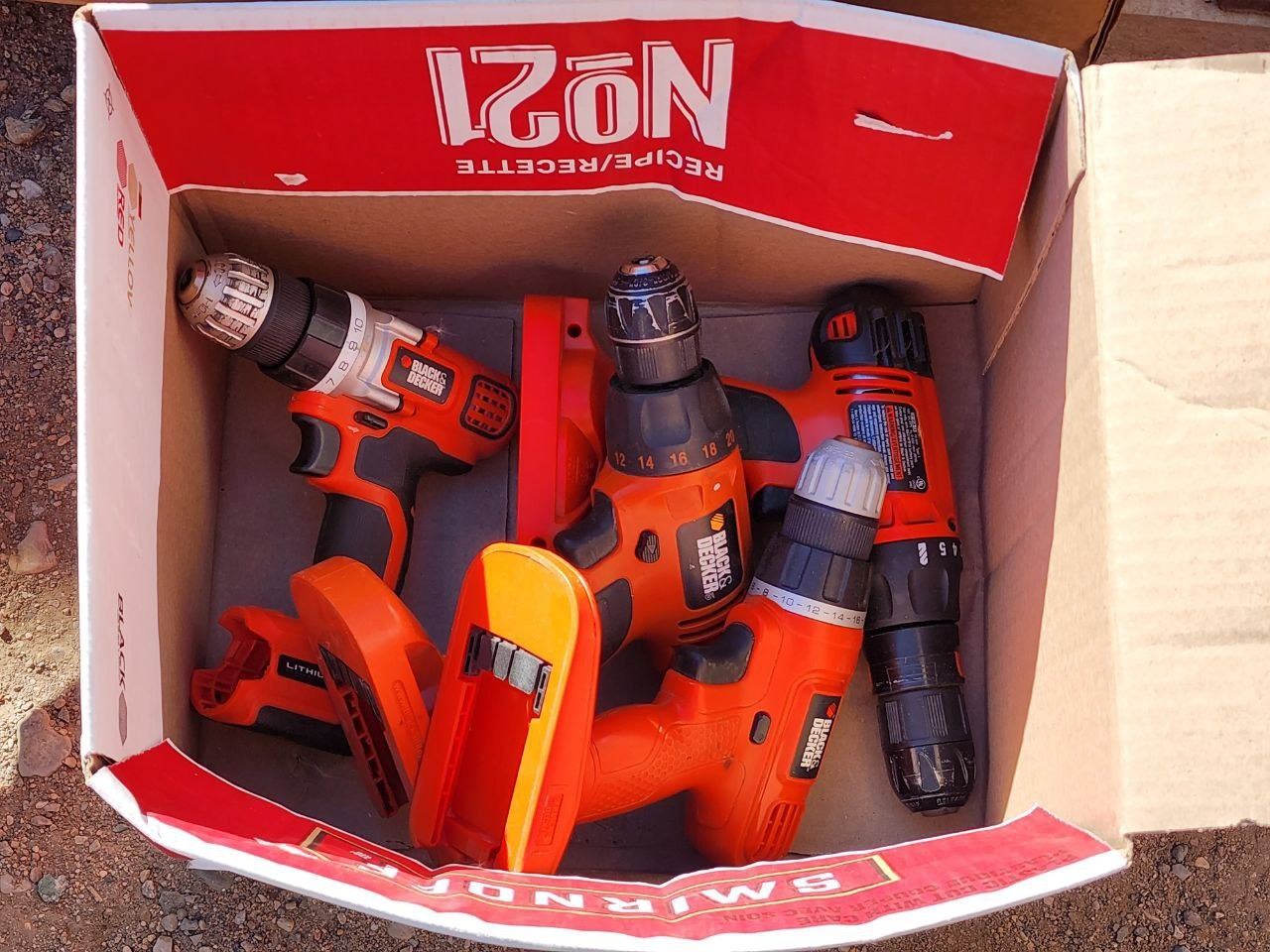 Box of Assorted "Black & Decker" Power Drills, No Batteries