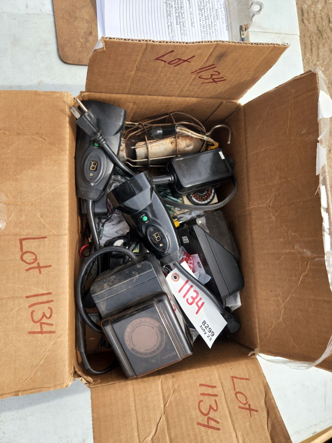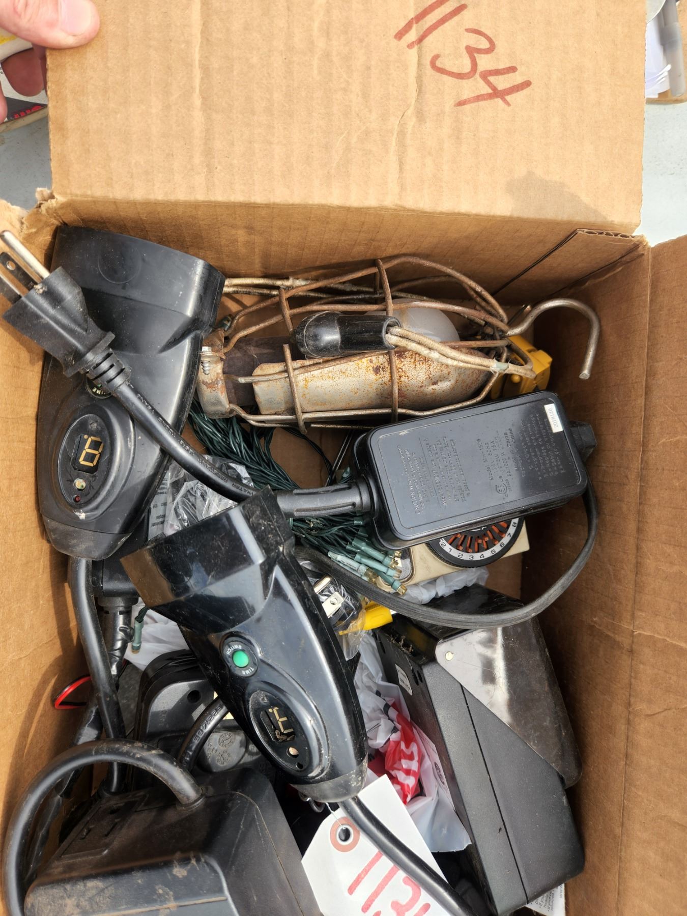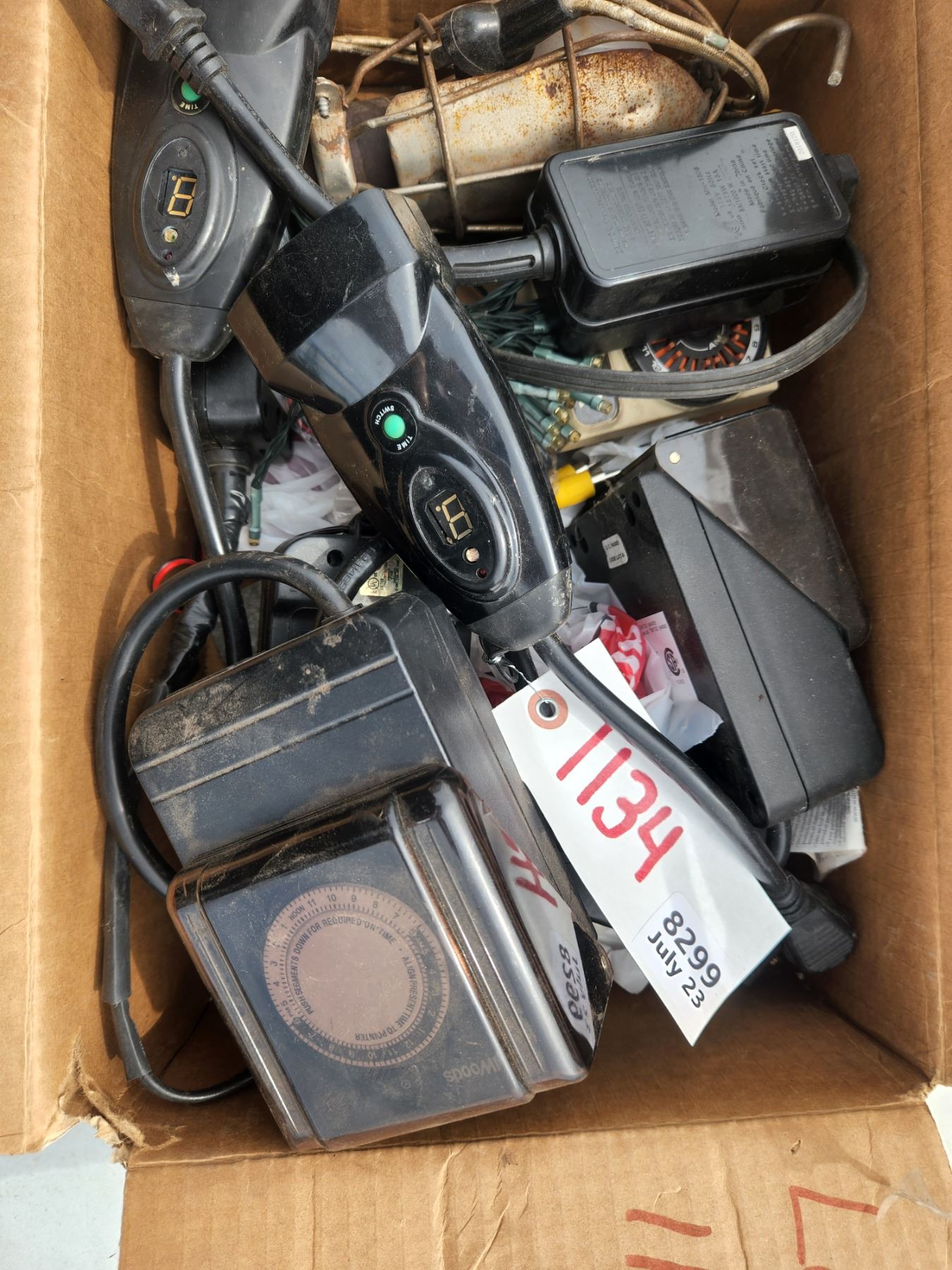 Box of Assorted Lights, Batteries, Timer, Switches, Etc.