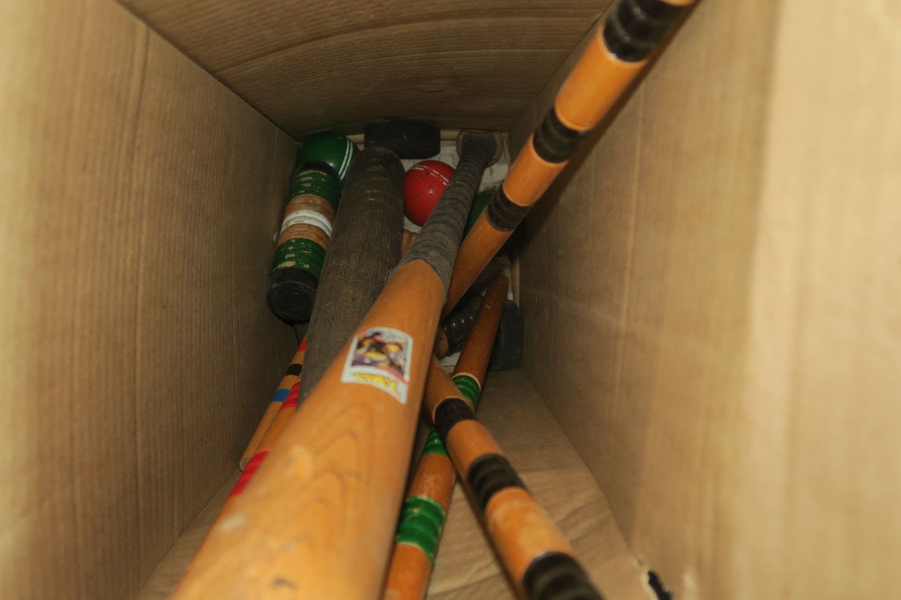 Box of Bats and Crocket Rackets