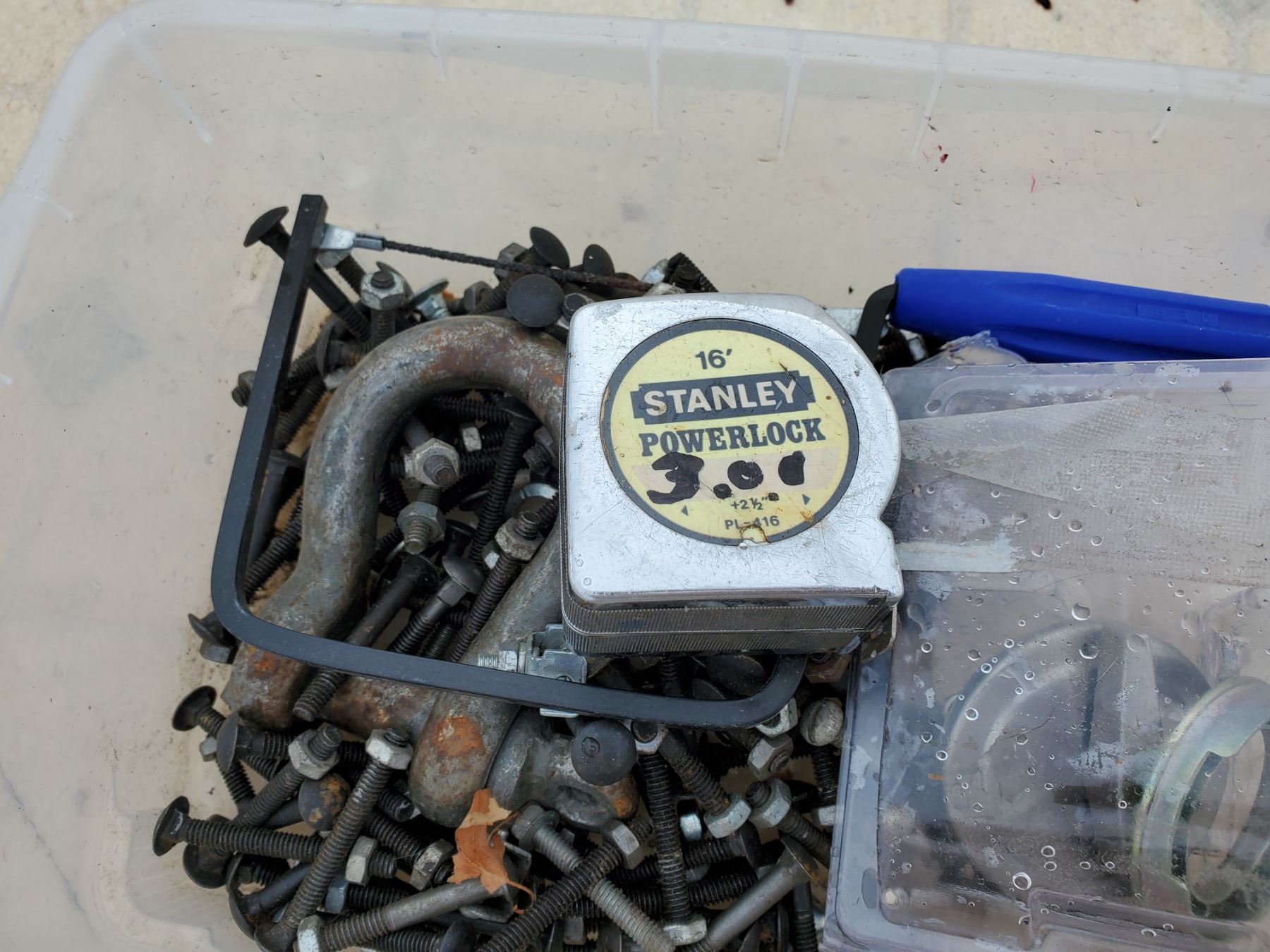 Box of Bolts + Deadbolt Lock Kit + Measure Tape