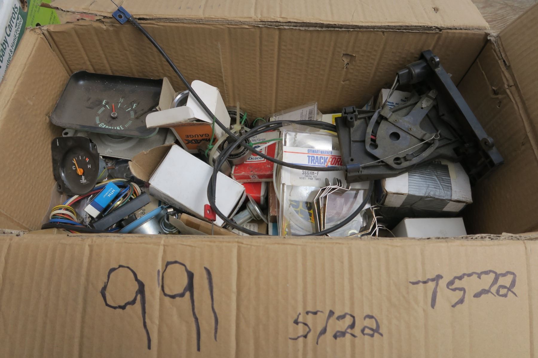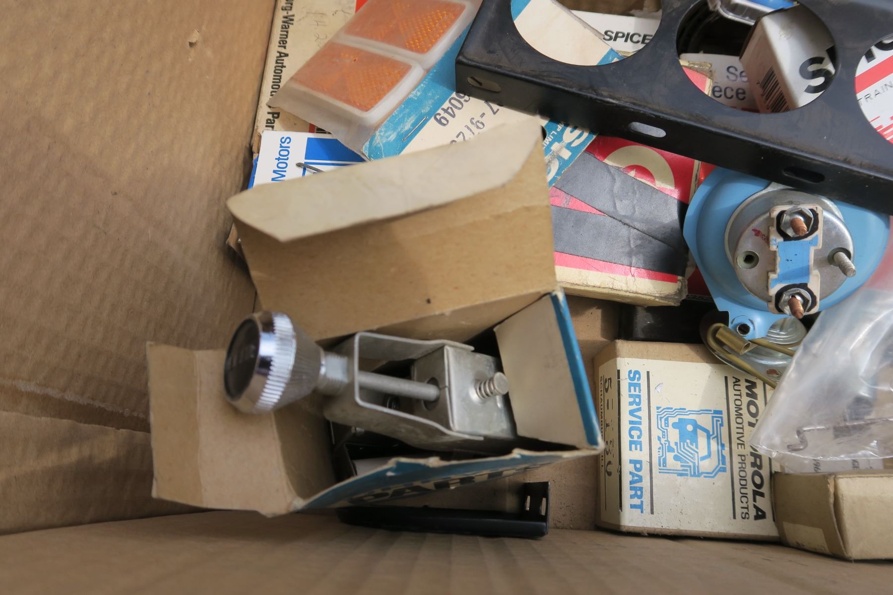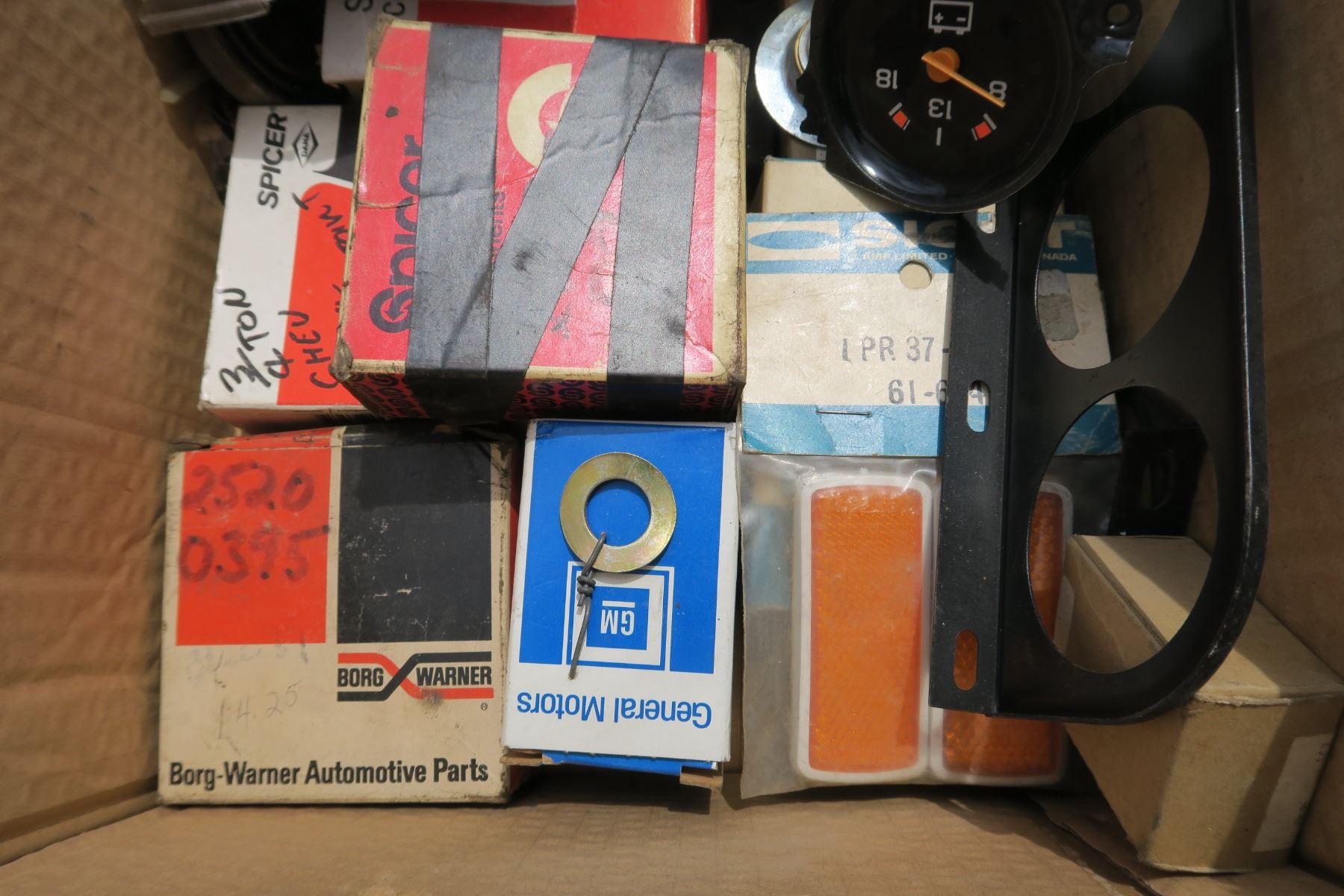 Box of Chevy/Chrysler Parts for Body and Interoir with Extras/Misc