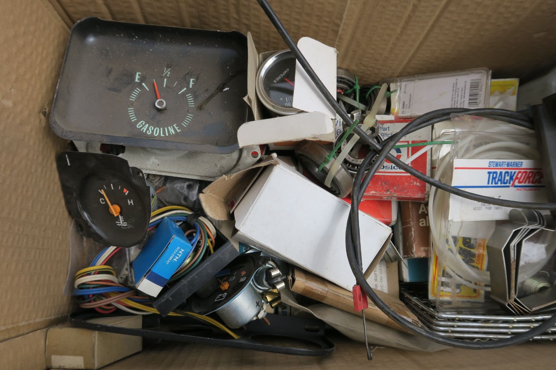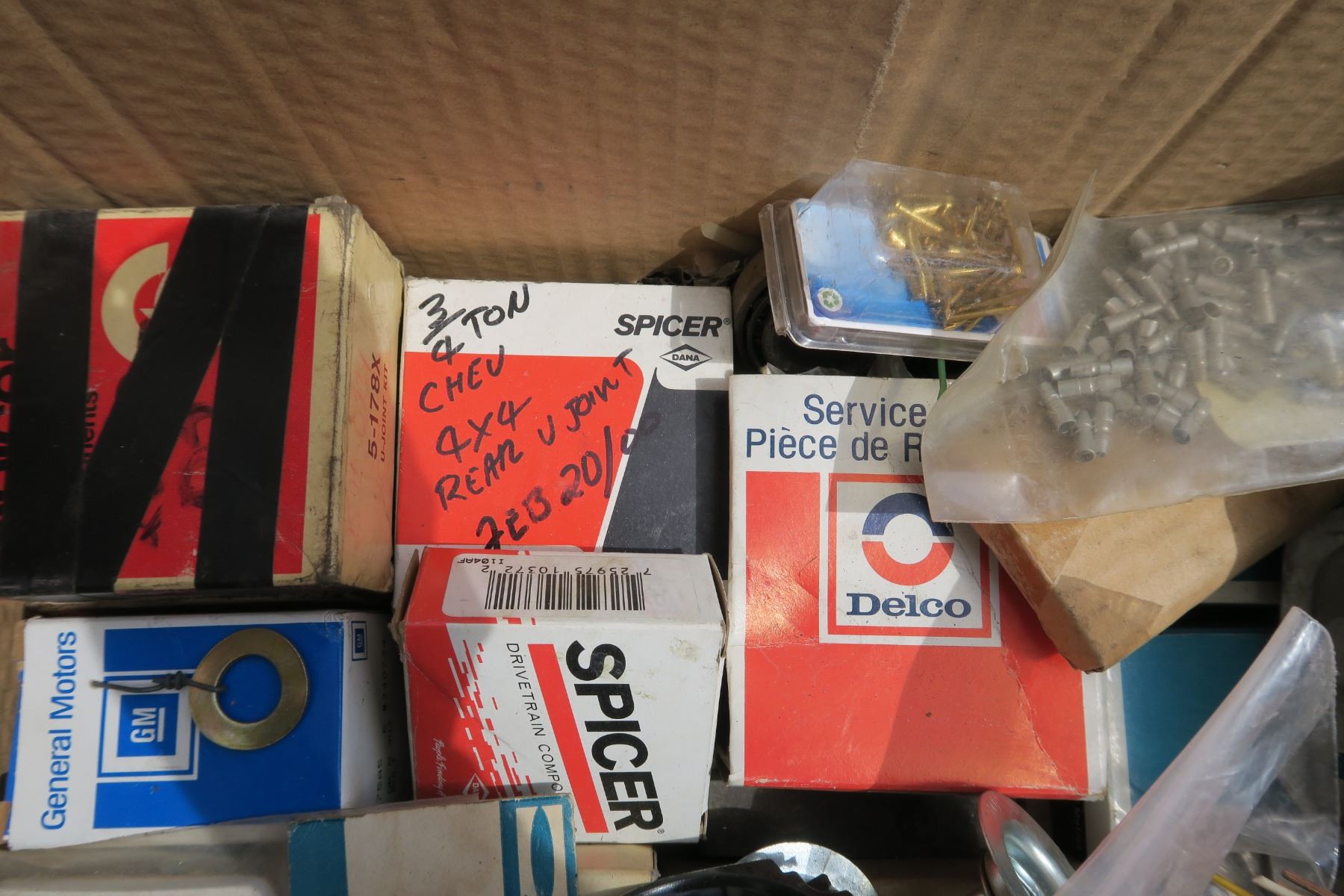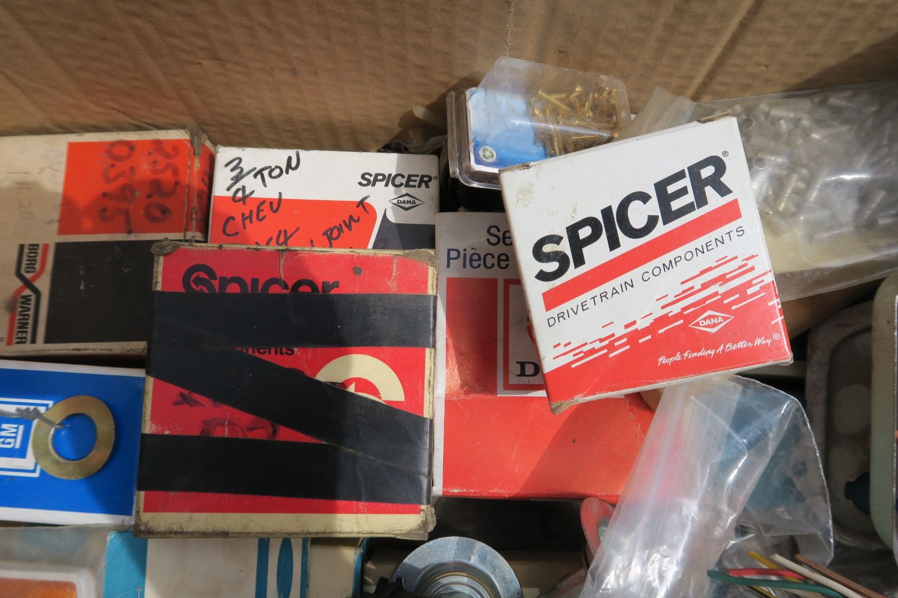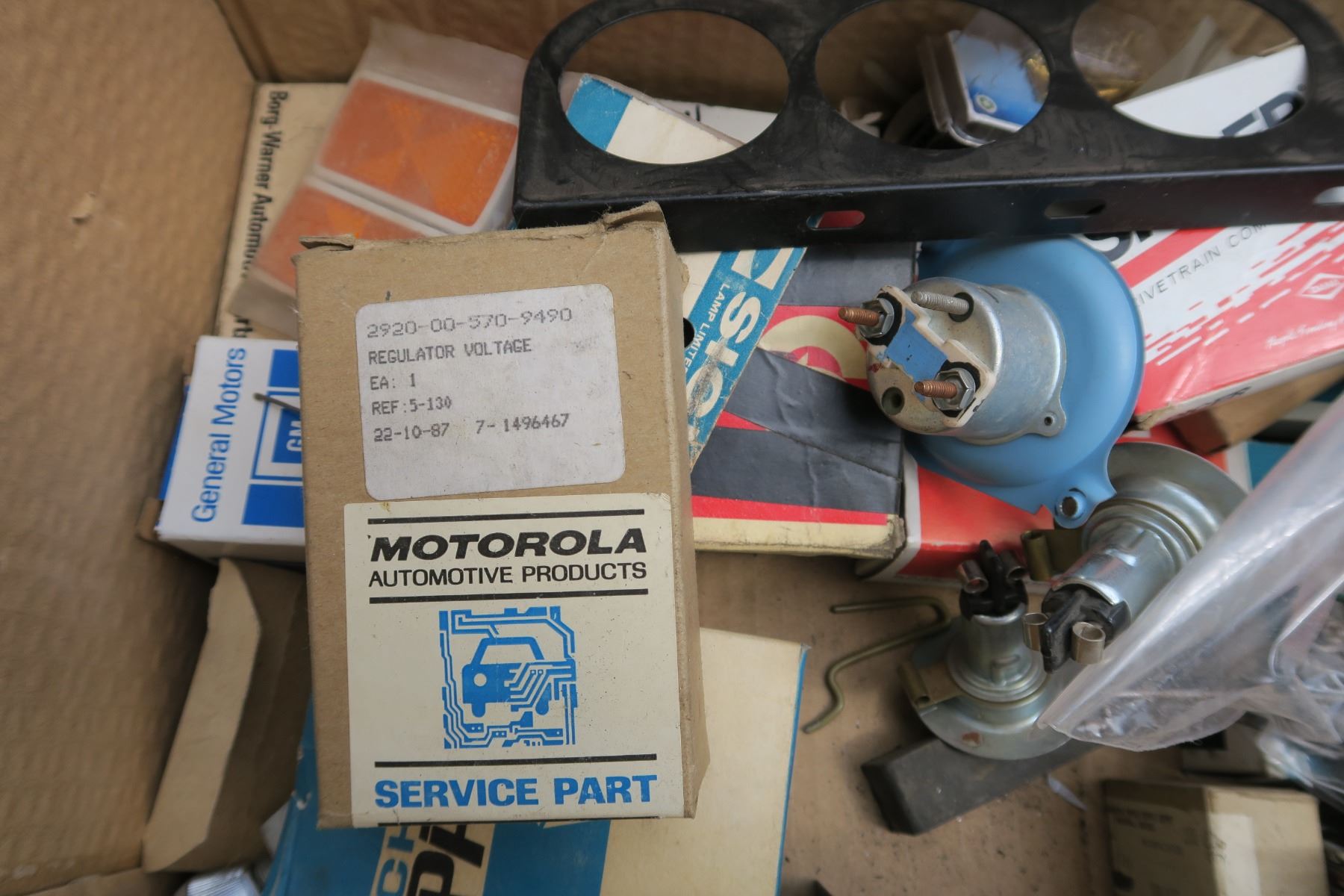 Box of Chevy/Chrysler Parts for Body and Interoir with Extras/Misc