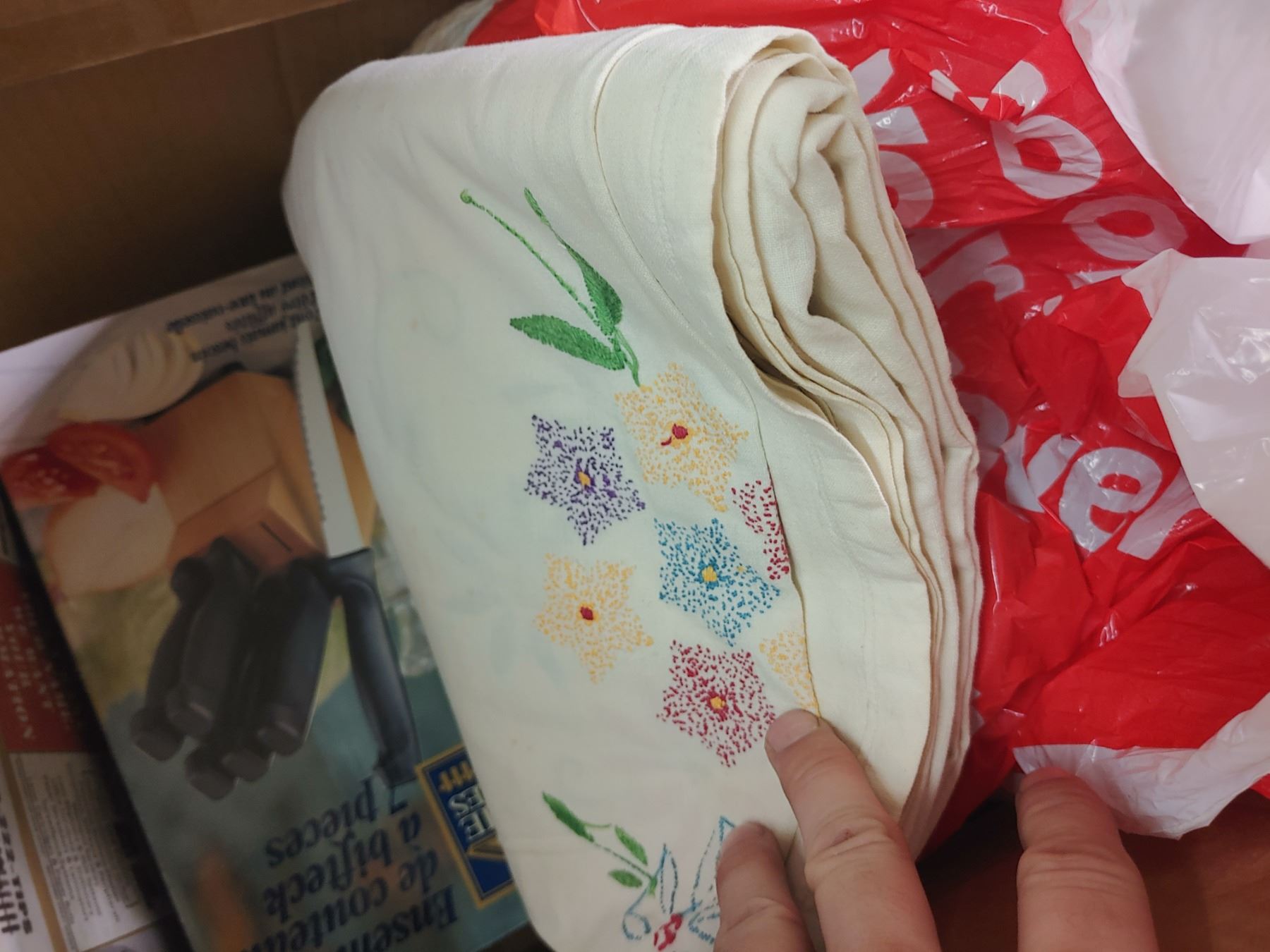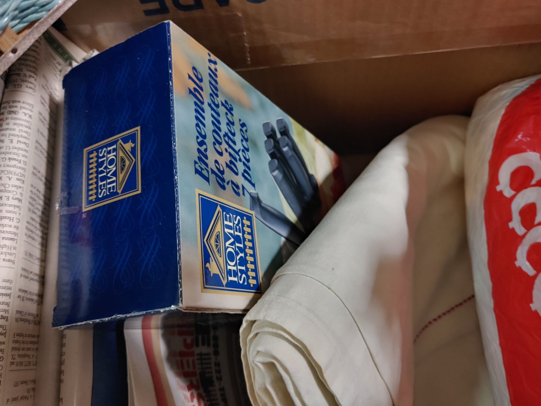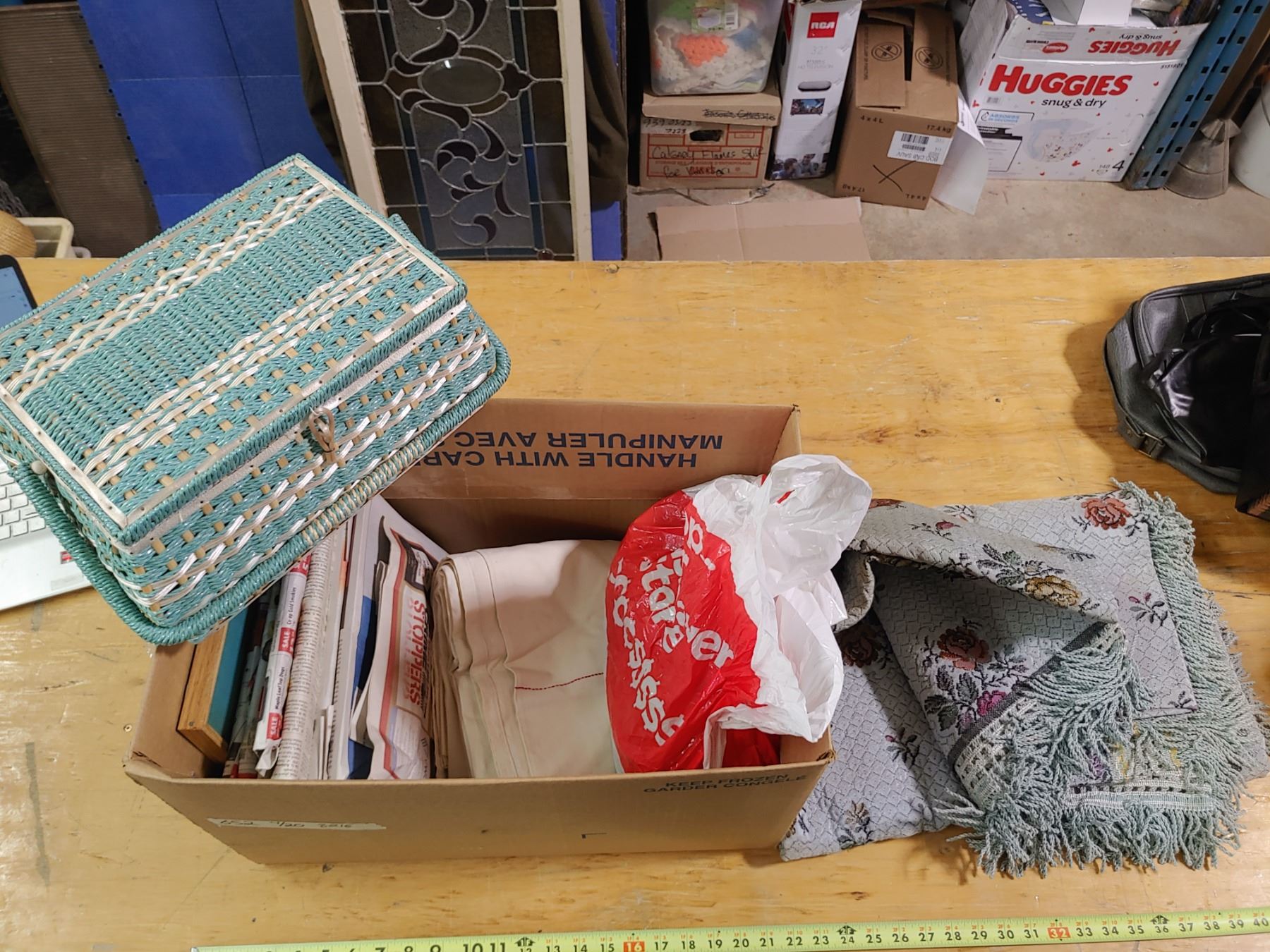 Box of Misc. Art Supplies, Sewing And Wall Hangings