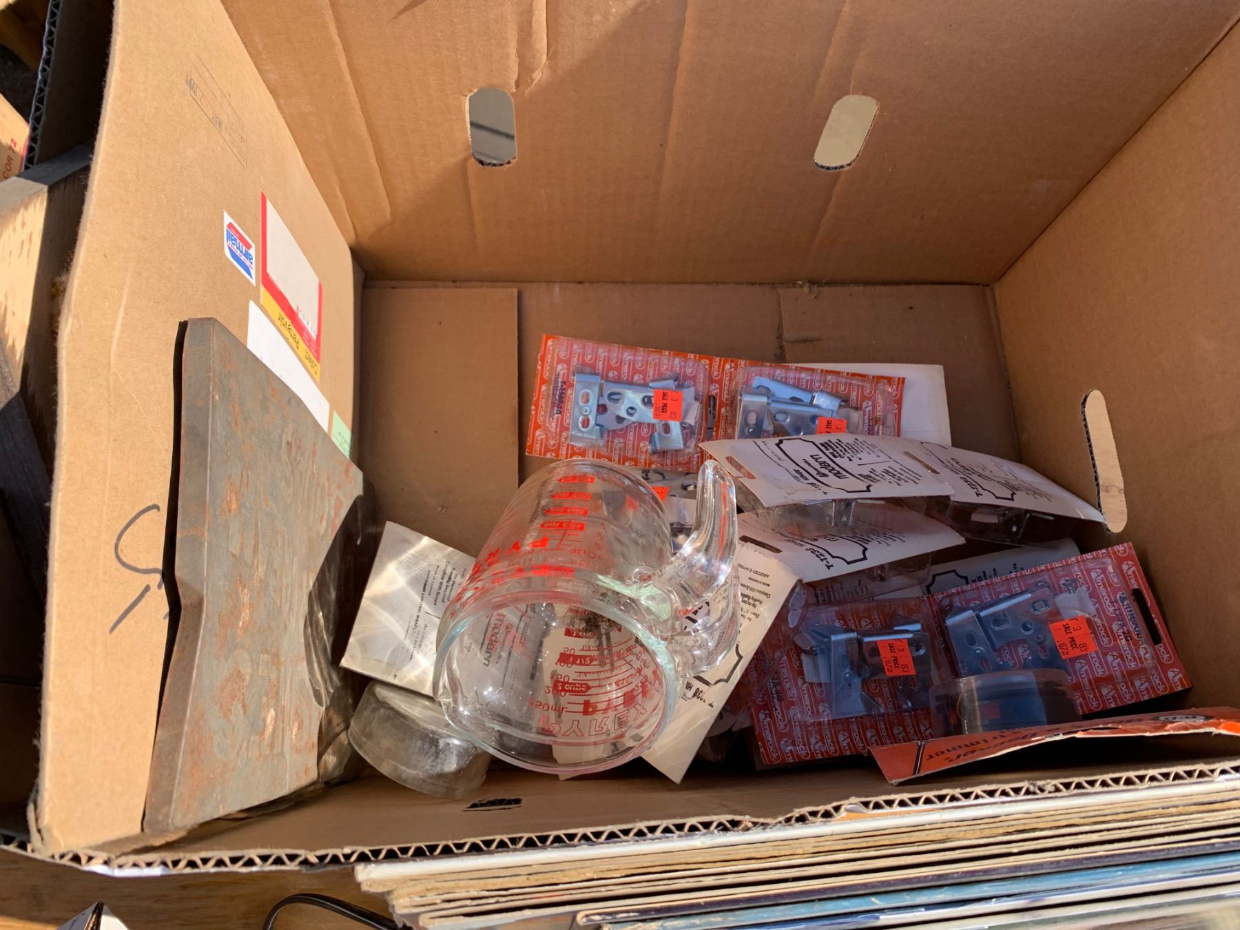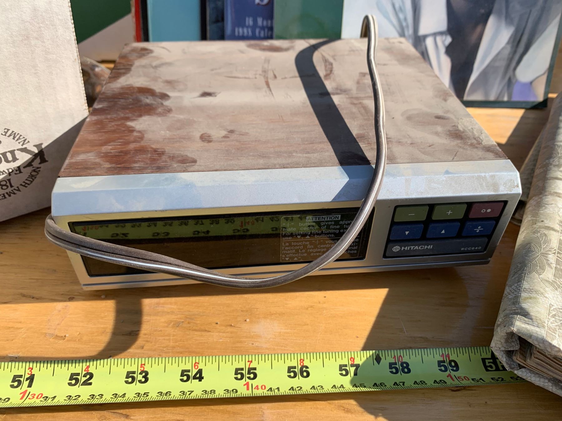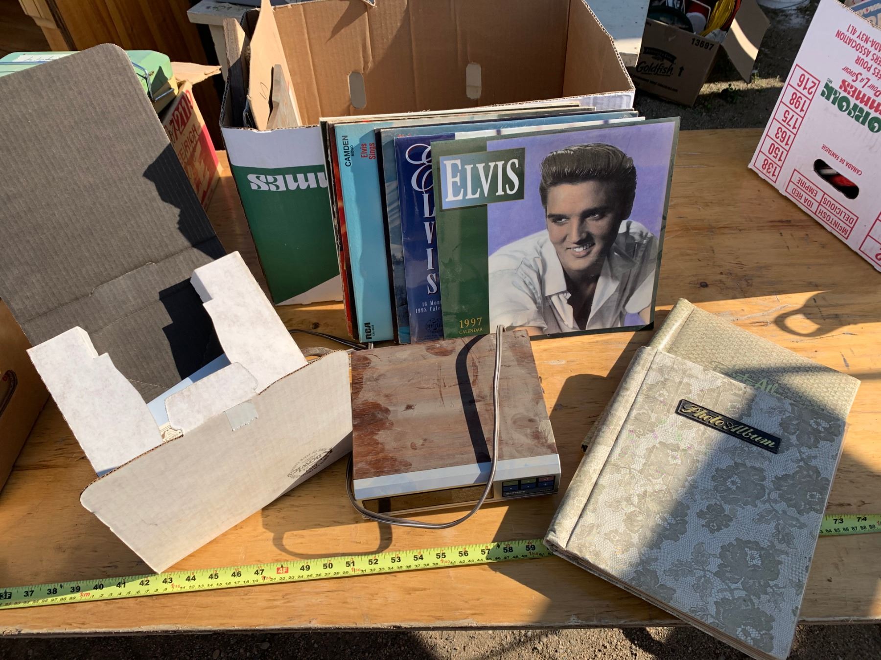 Box of Misc. Collectibles - Hitachi CatV Converter, Records, etc.