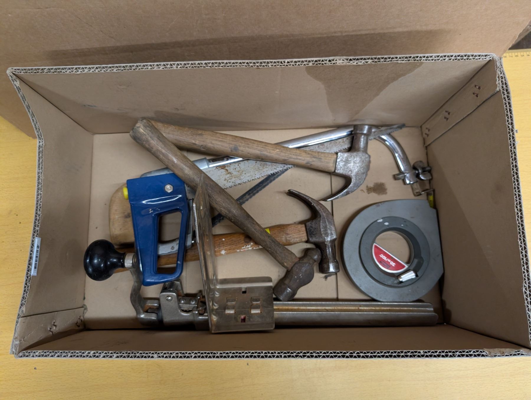 Box of Misc. Tools (Hammer, Saw, and etc.)
