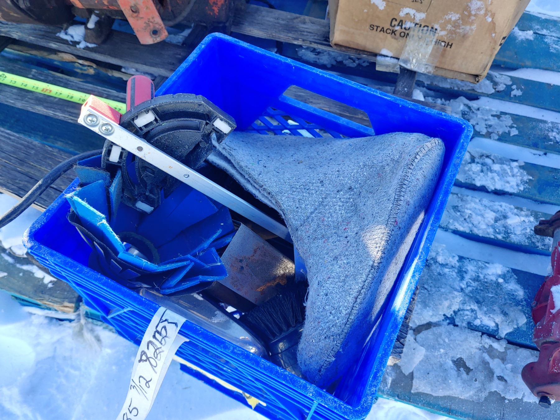 Box of Misc. Tools, Miter Gauge Shop Vac Attachments Etc.