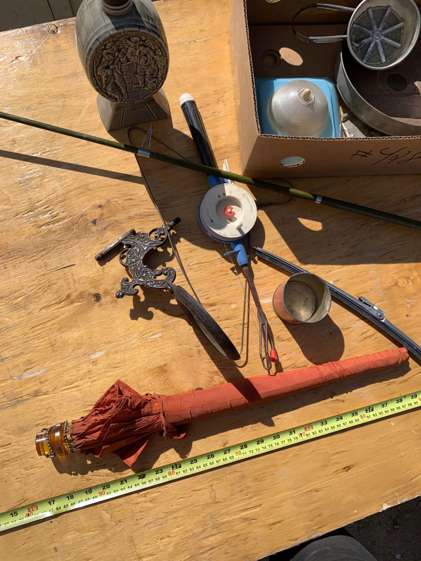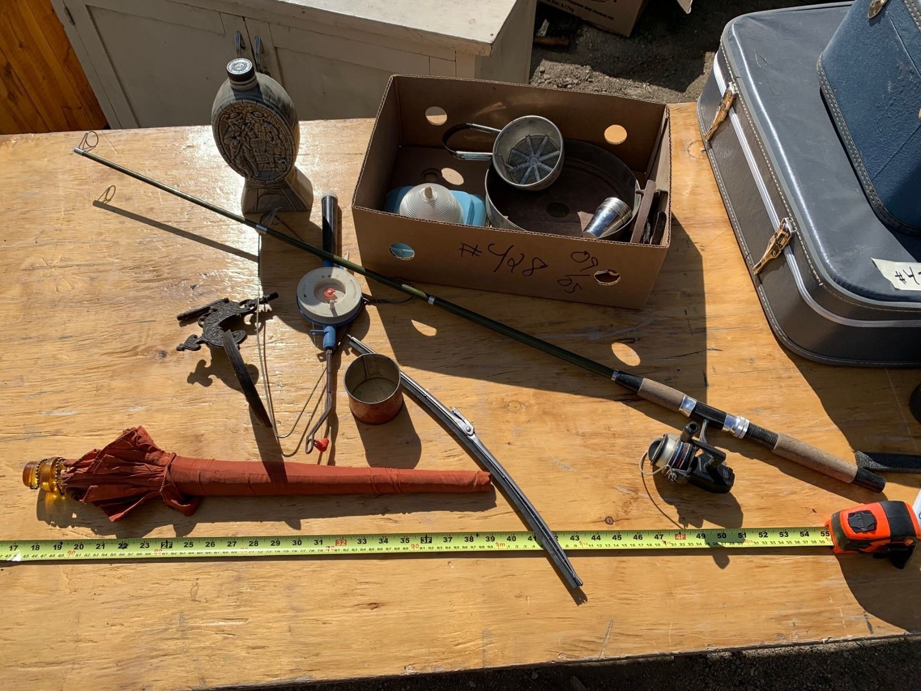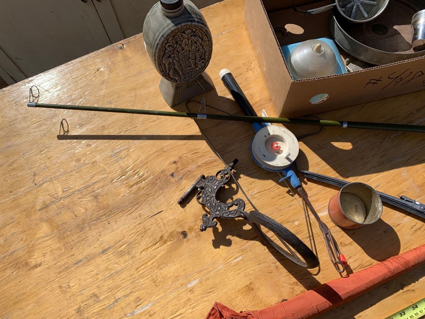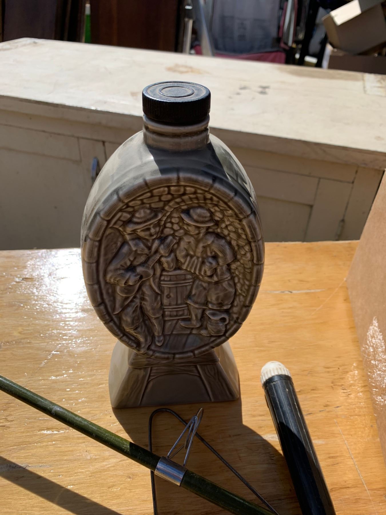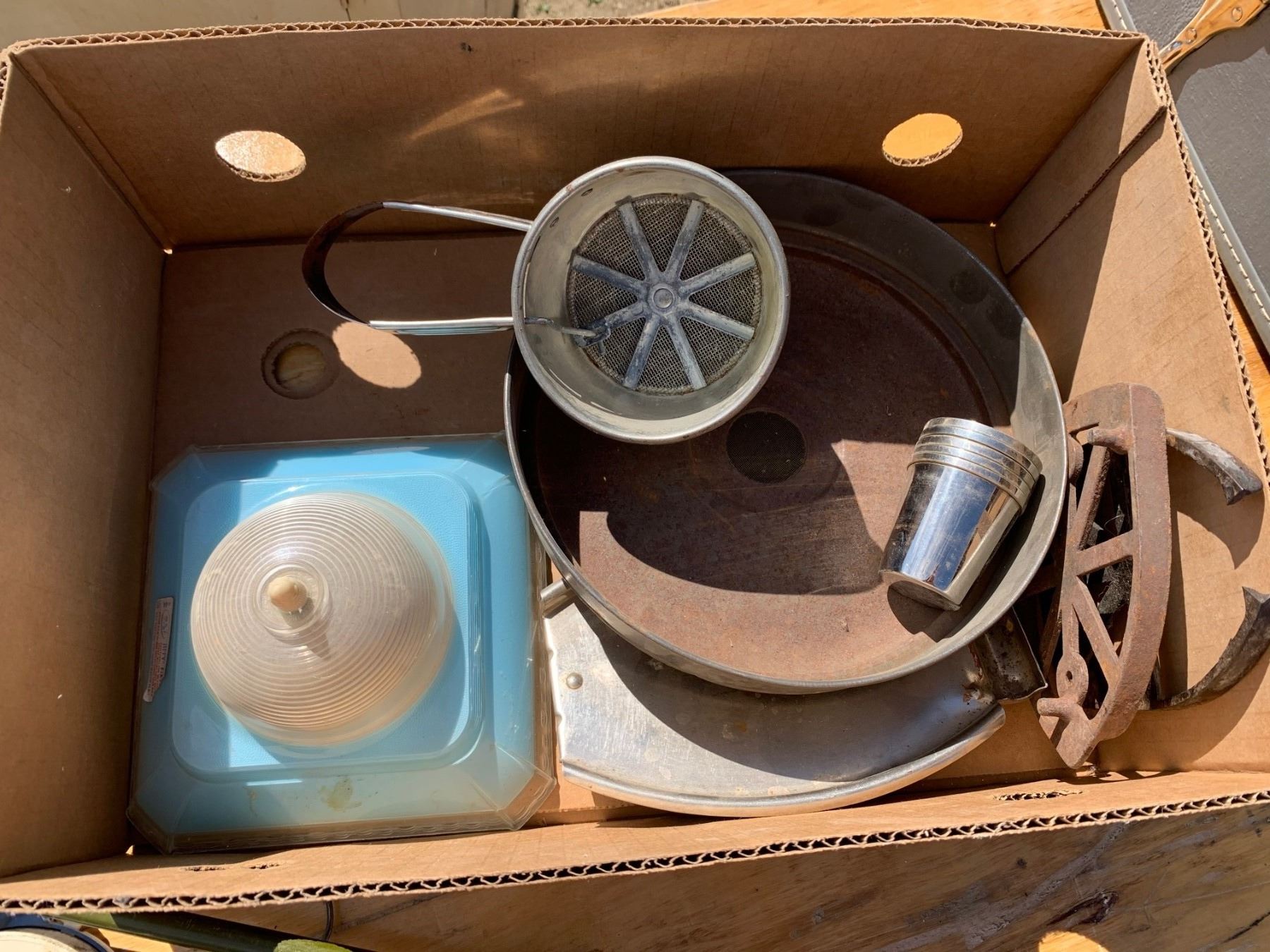 Box of Misc. - Whiskey Bottle, Lamp Bracket, etc.