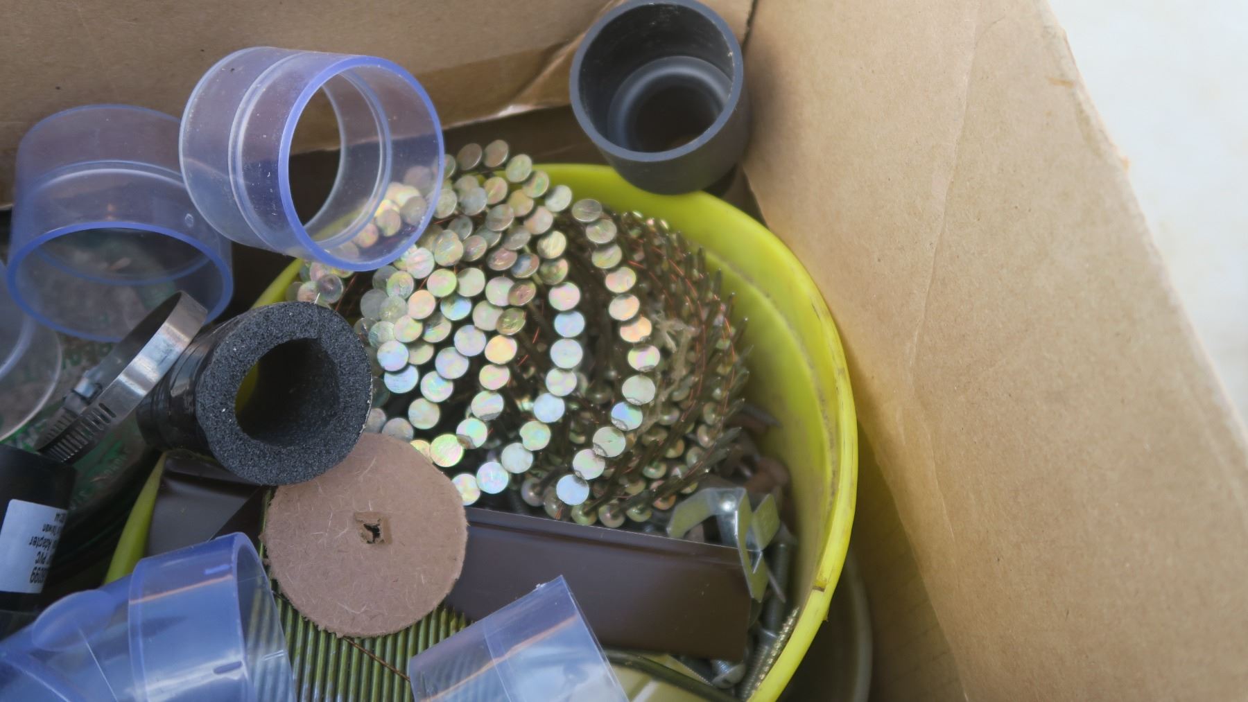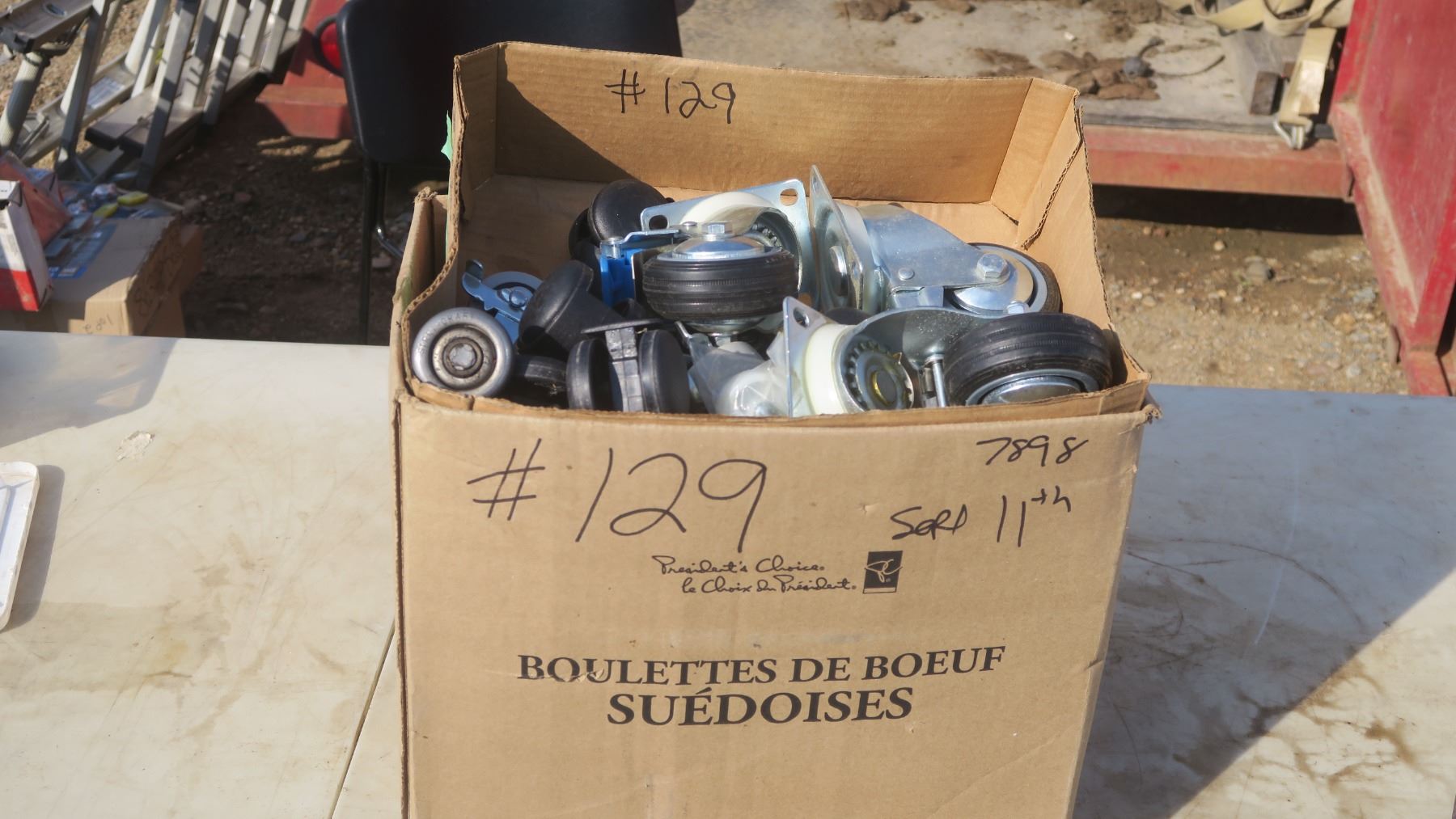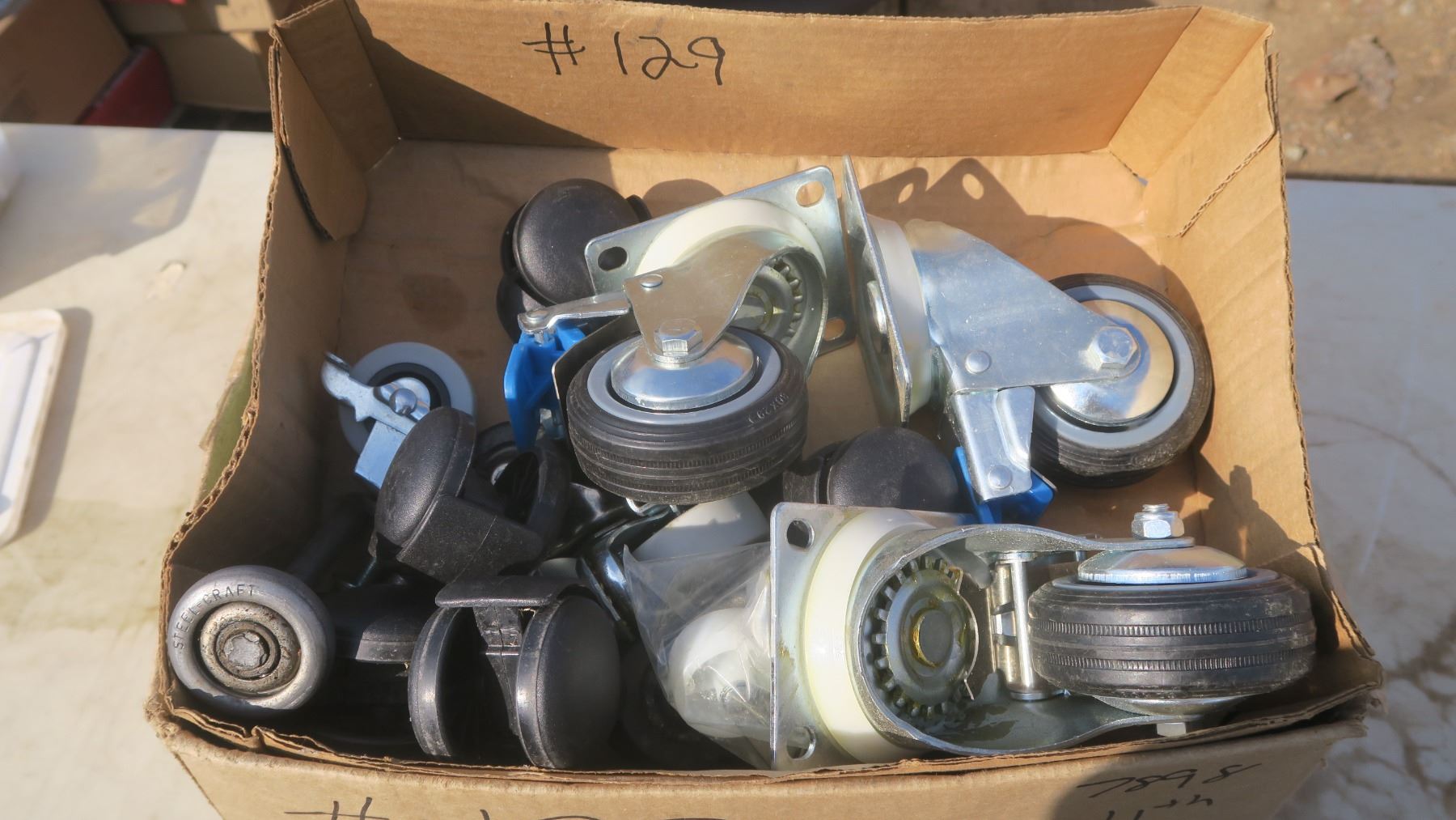 Box of Misc. wheels & casters, Screws & bolts and other items.