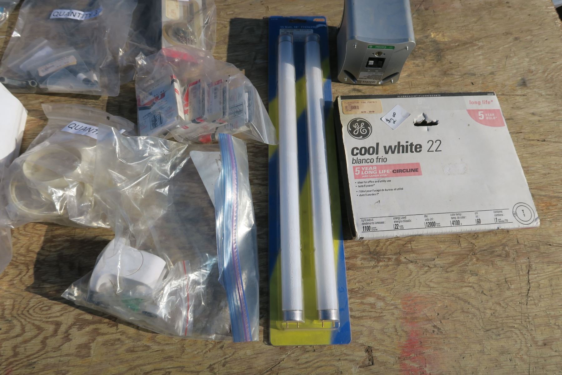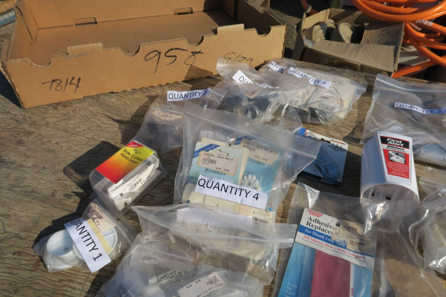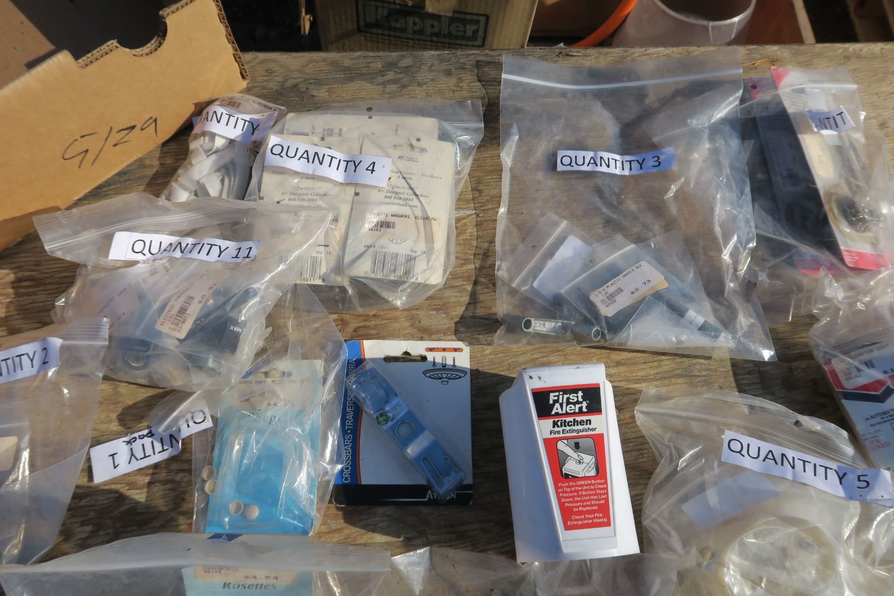 Box of Miscellaneous Houshold/Camper/Trailer Hardware - Drawer Securers, Rossettes, Speraker, Bulbs and More