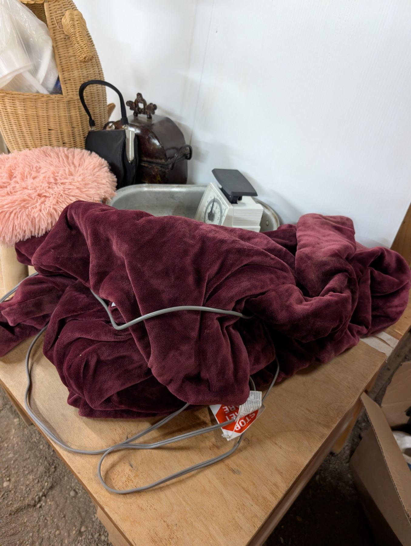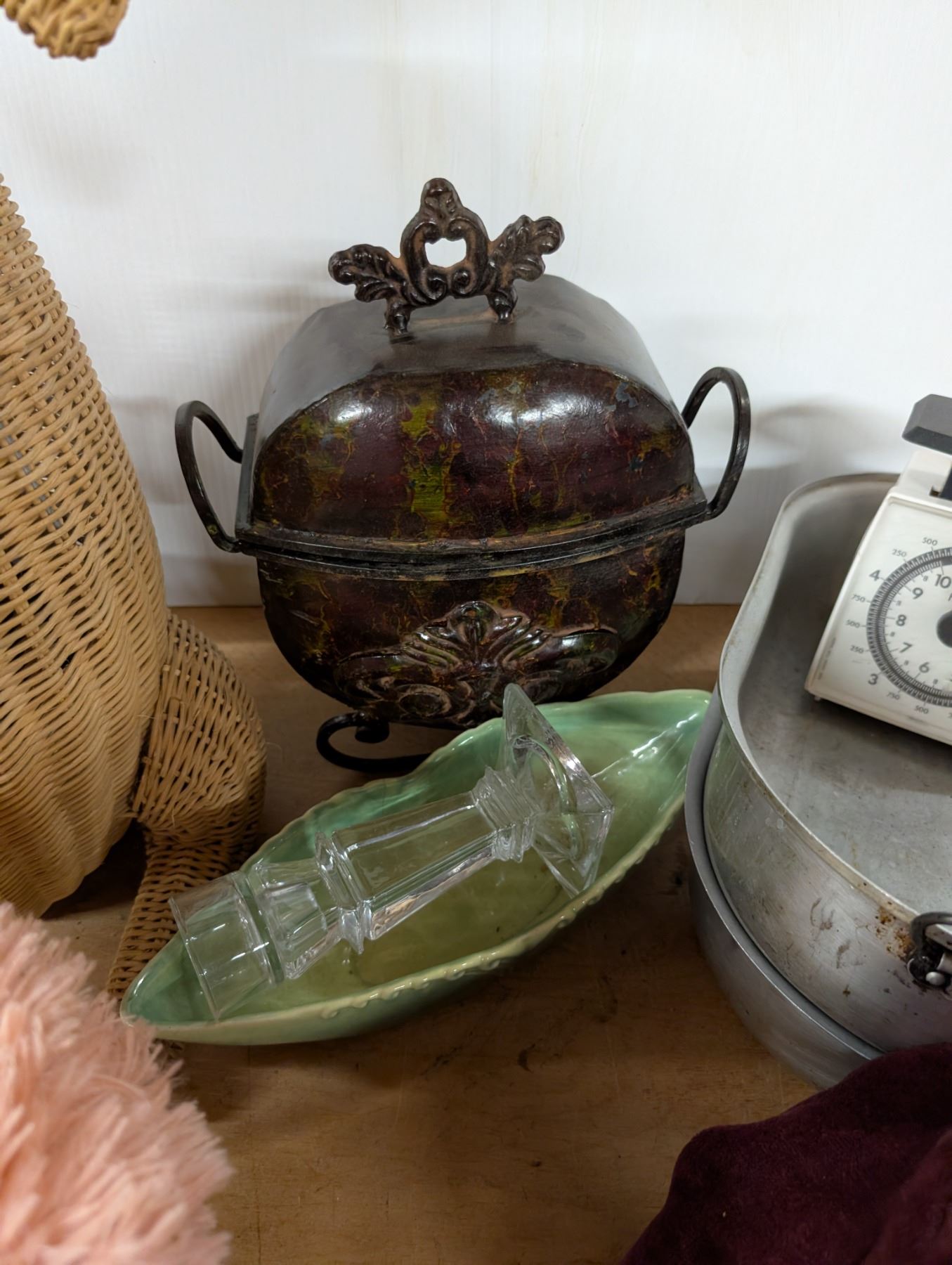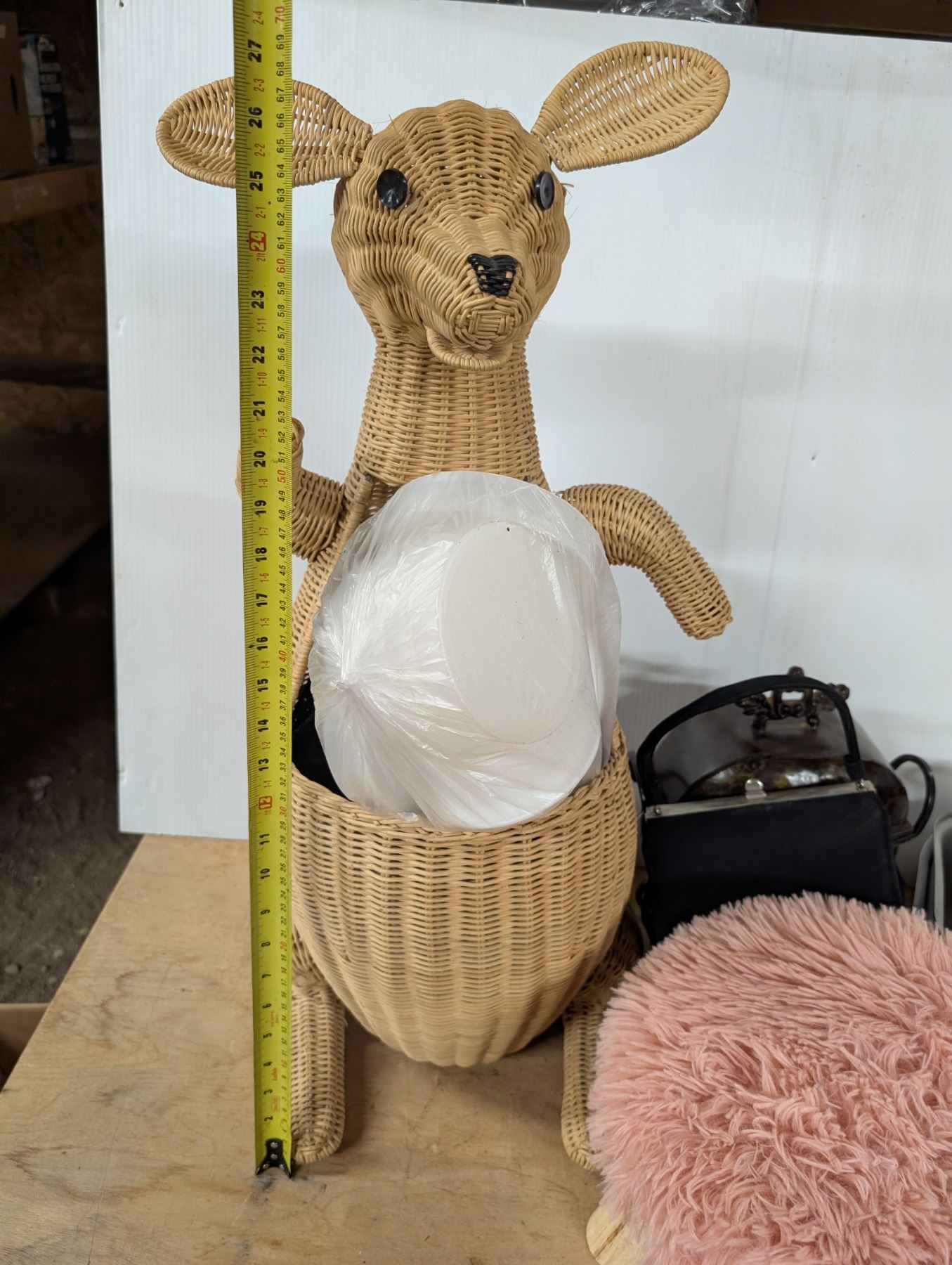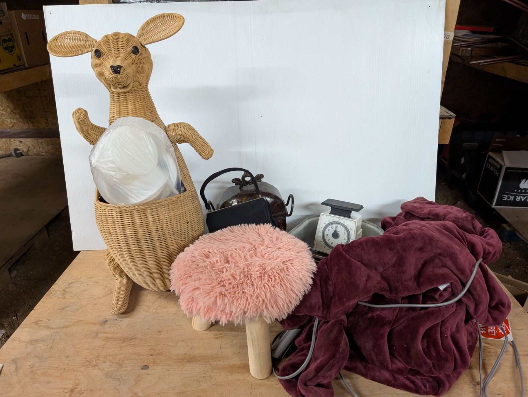 Box of Miscellaneous Items (Stool, Wood Kangaroo basket, purse, etc)