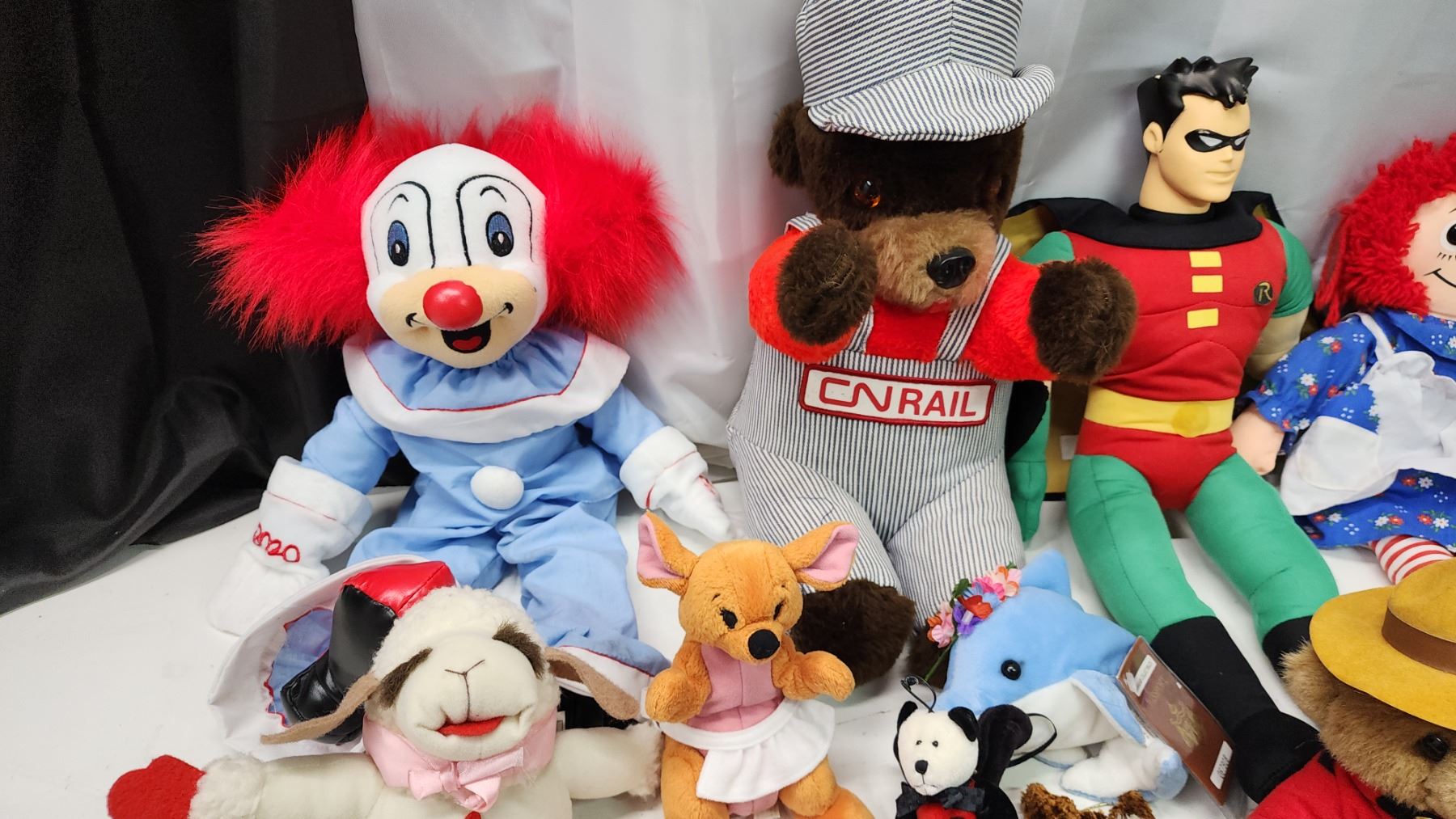 Box of Vintage toys and stuffed animals