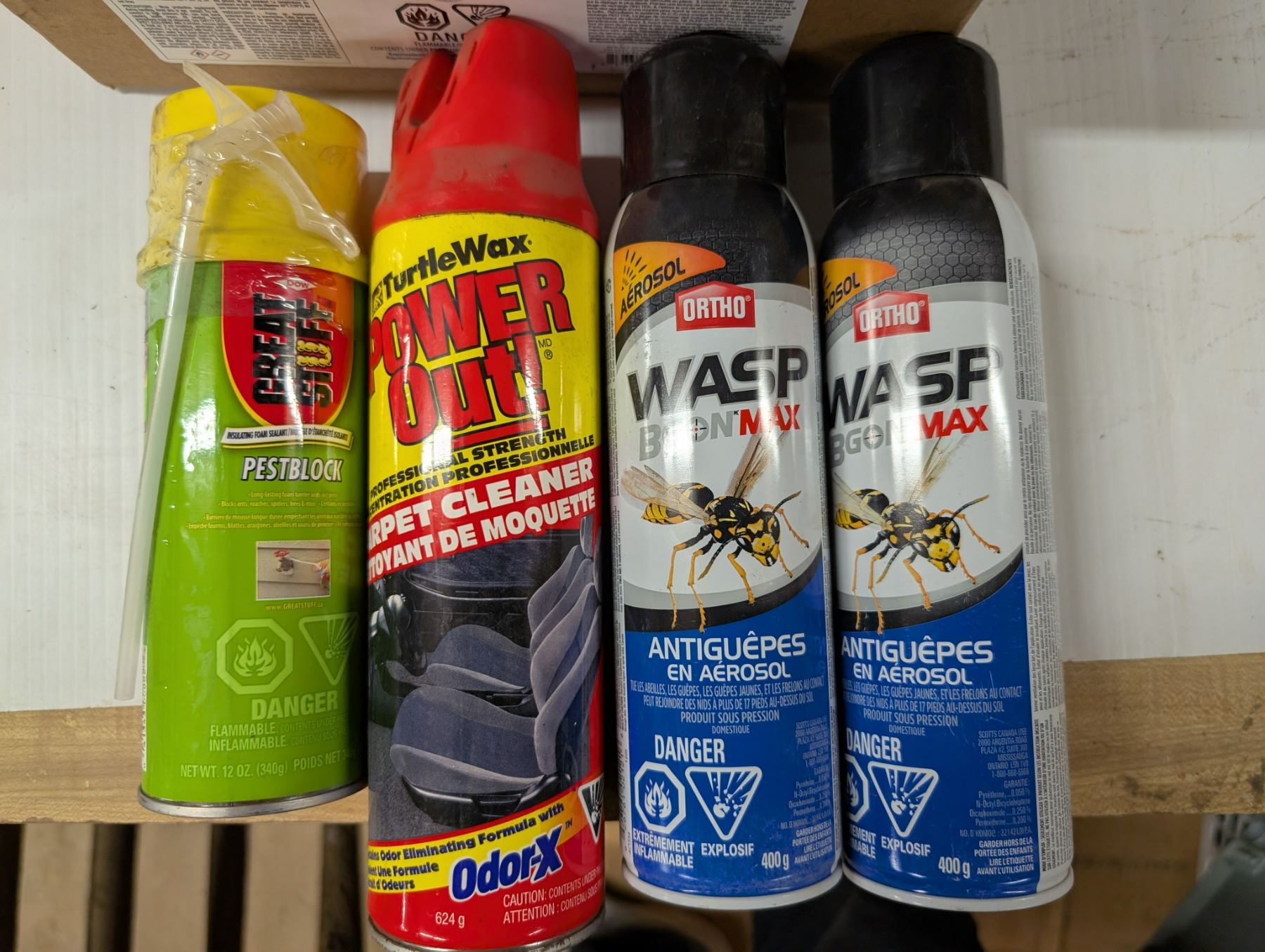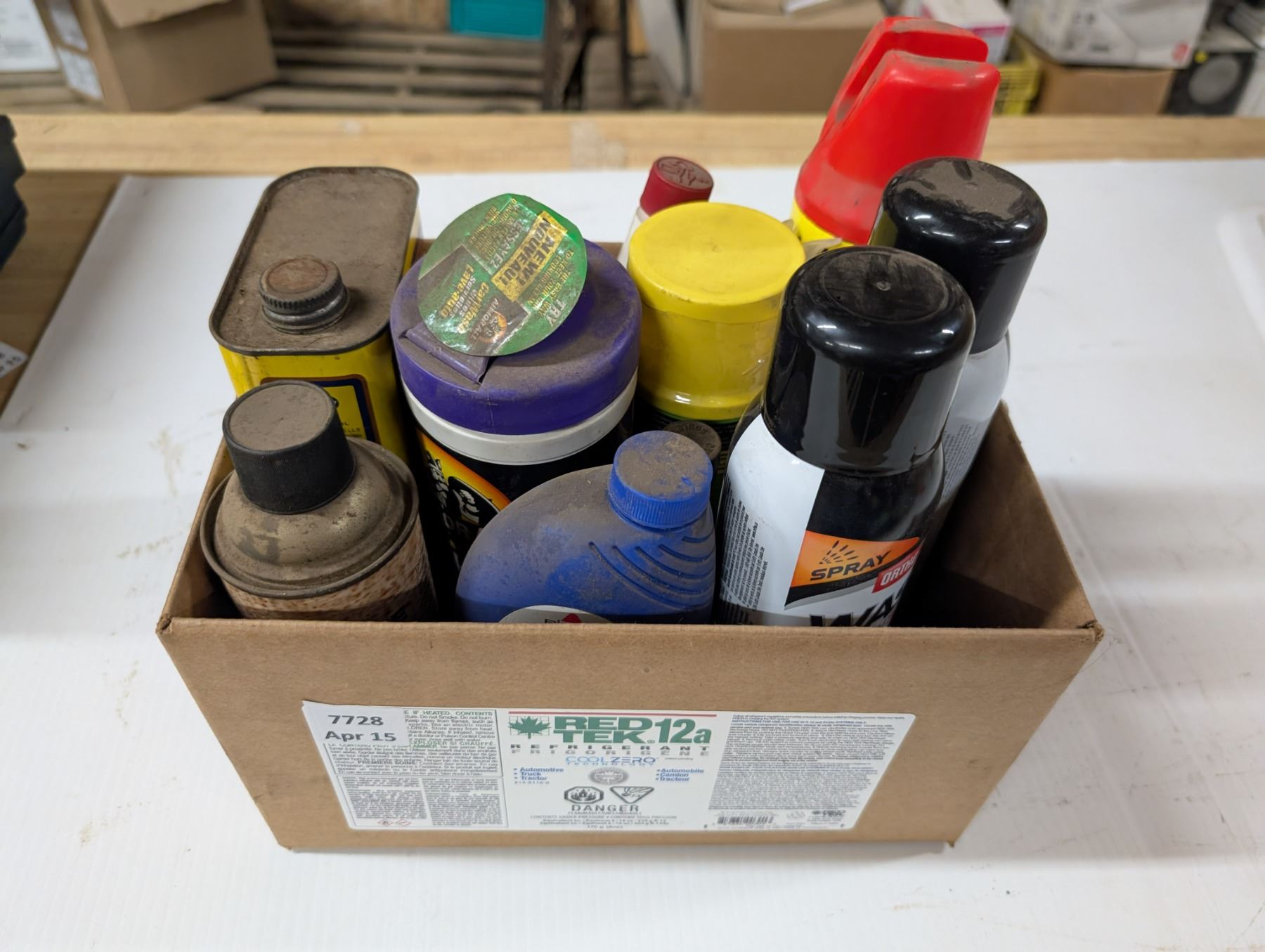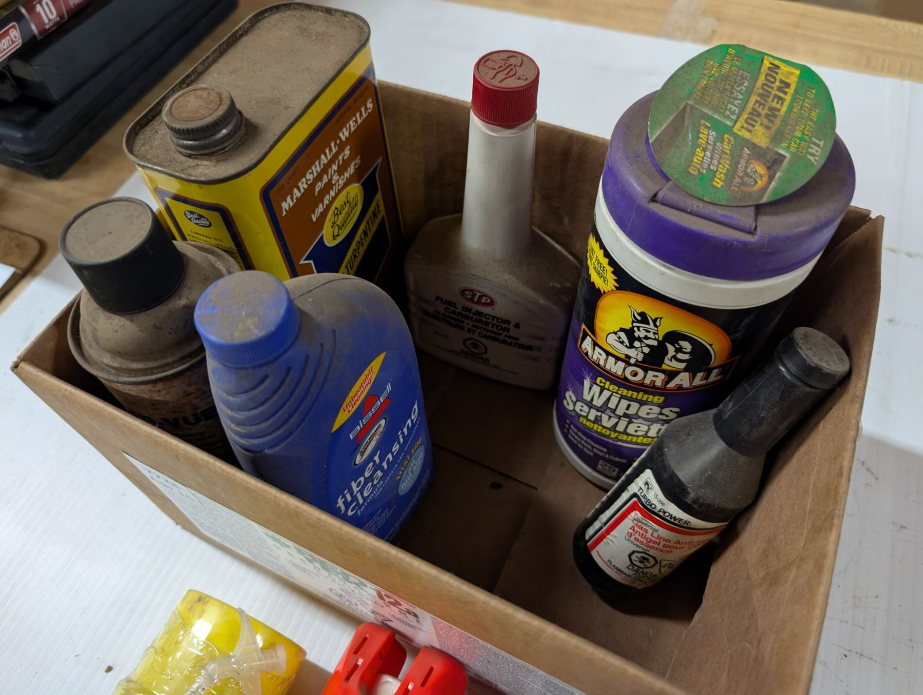 Box of WASP Spray, Carpet Cleaner, Fuel Injector, and etc.
