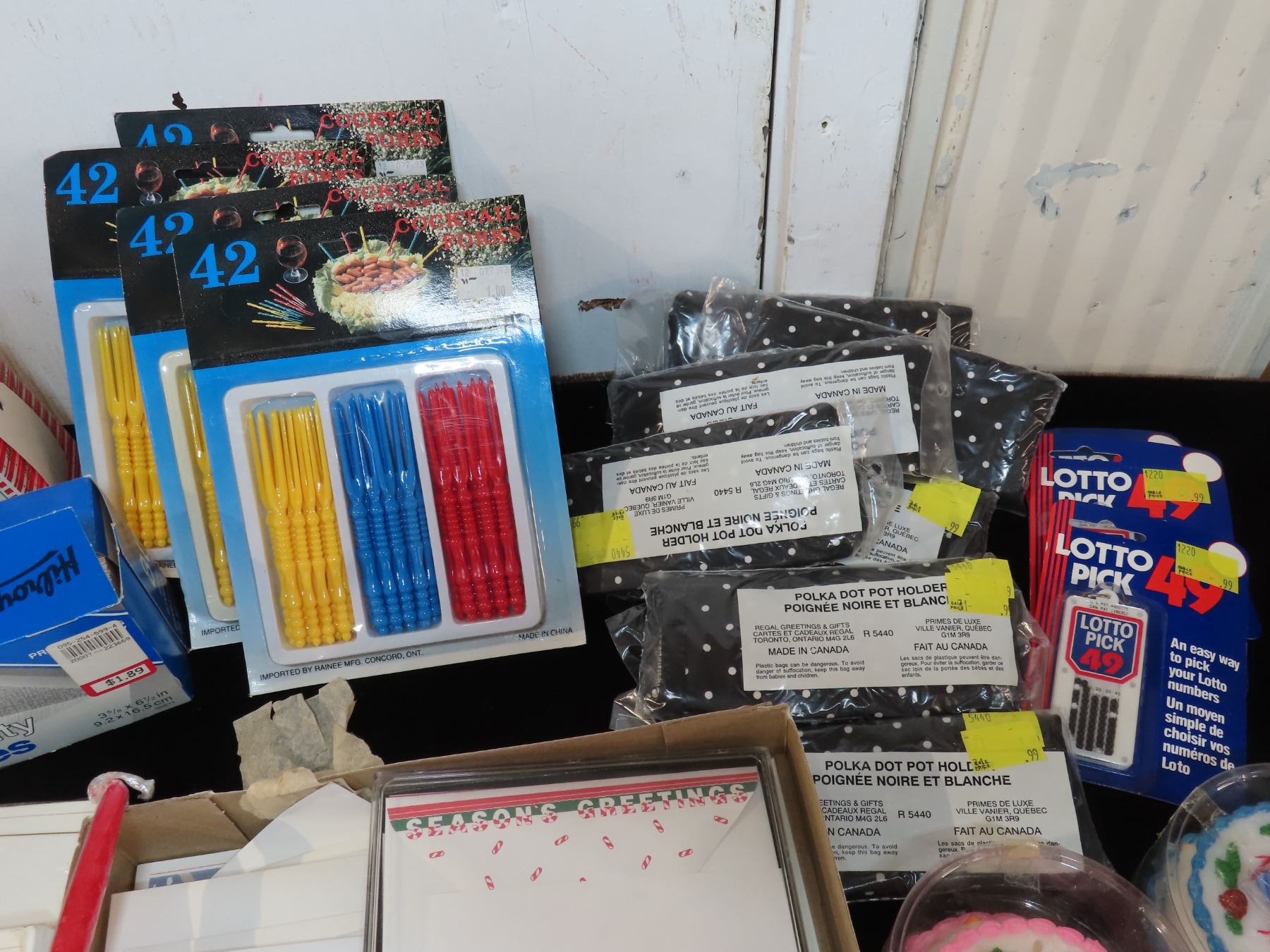 Box of assorted party/wedding/birthday décor, accessories, etc.