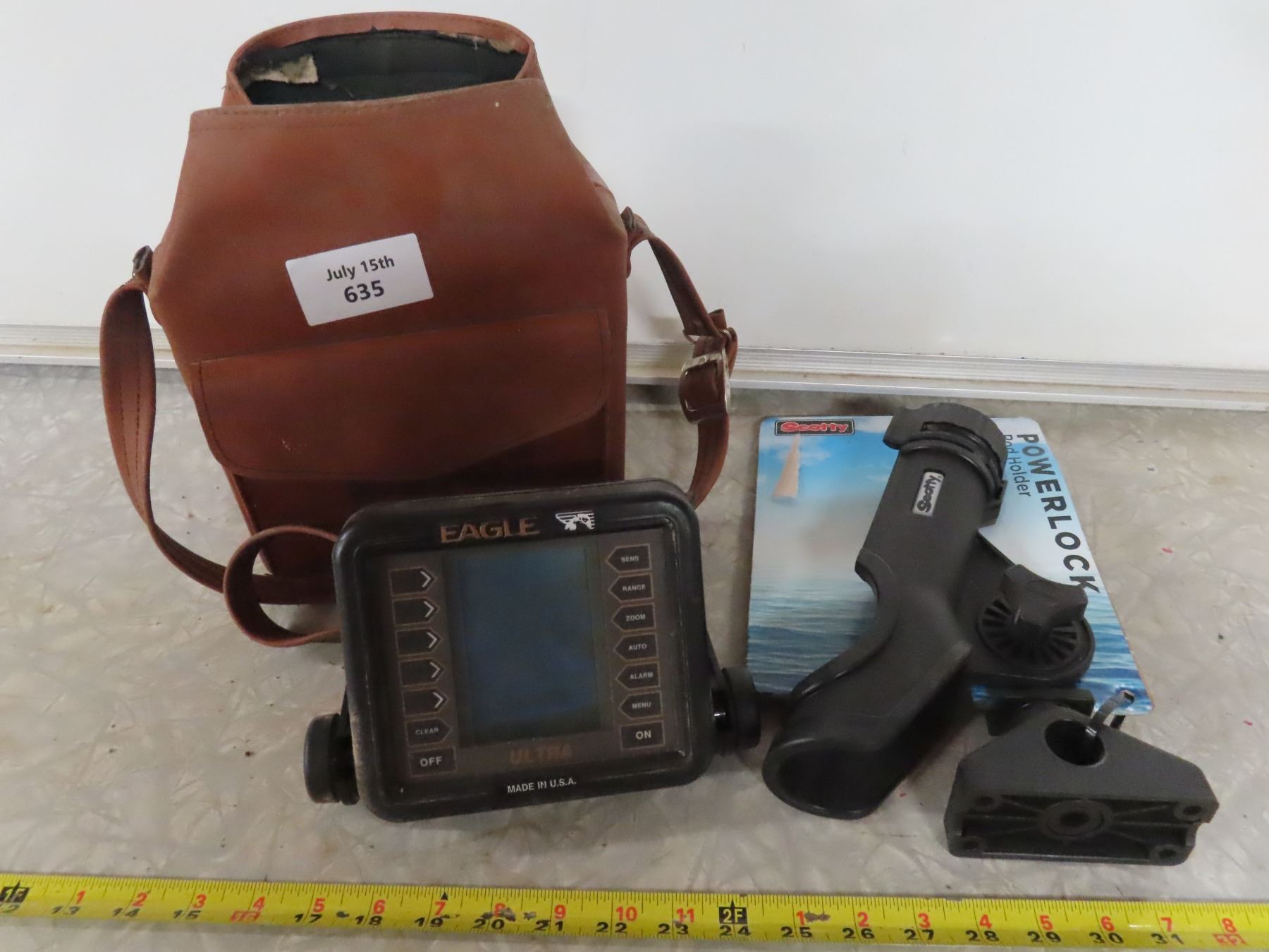Brand New Scotty Powerlock Rod holder + Eagle Ultra Fish Finder & Case- no cords