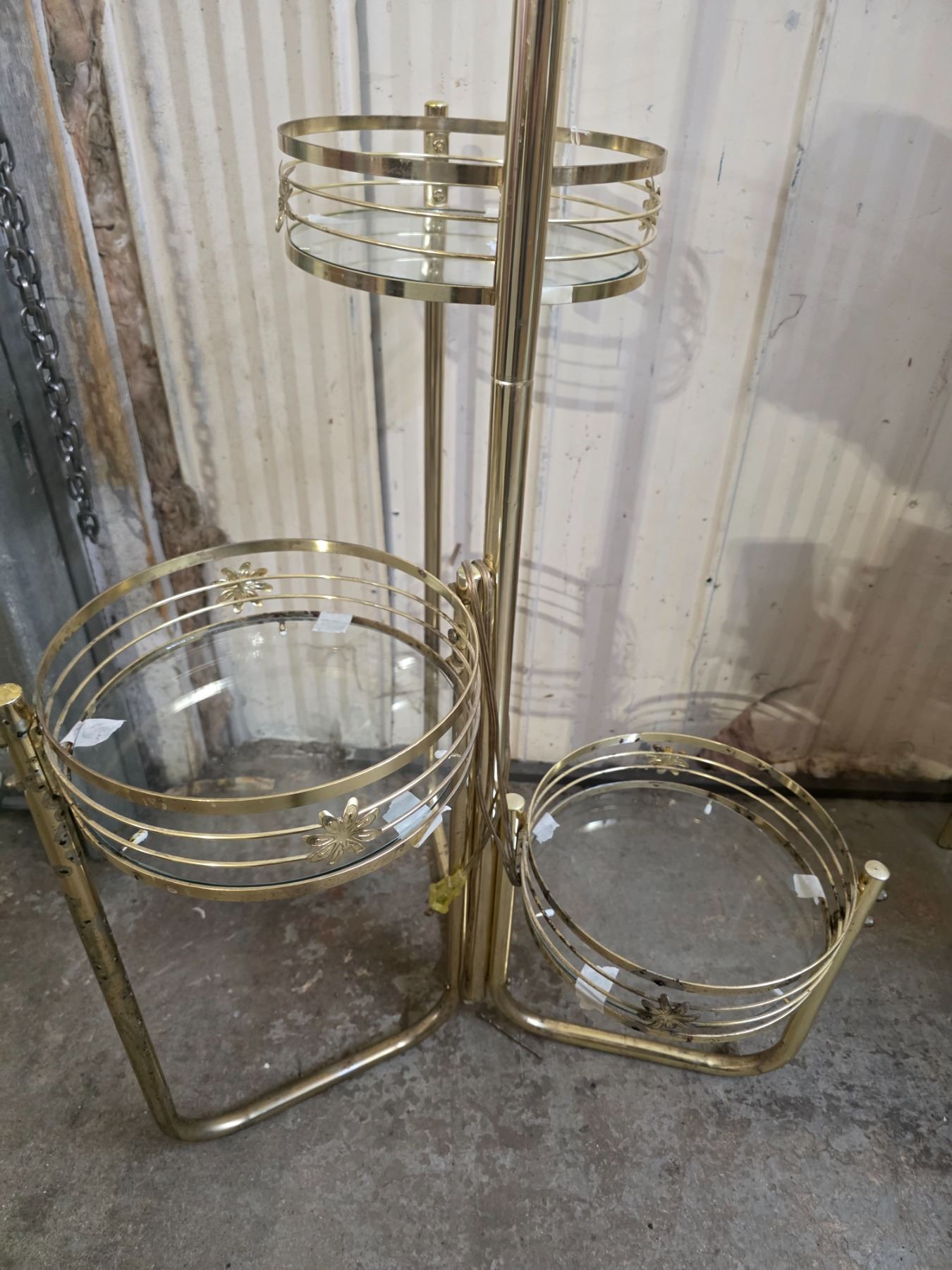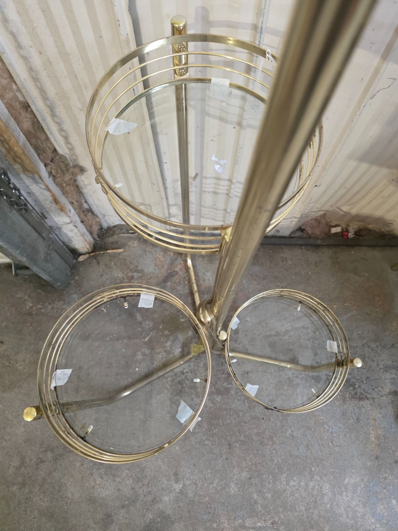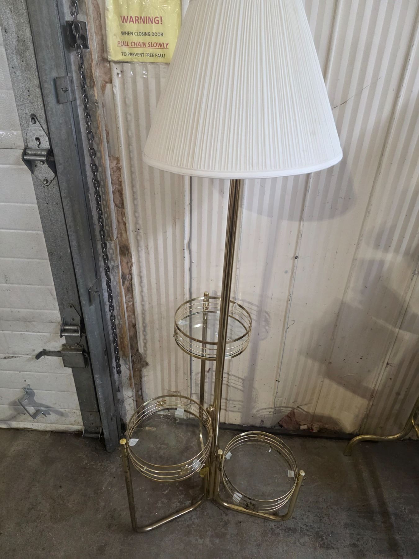Brass and glass lamp with shelves- 63"H