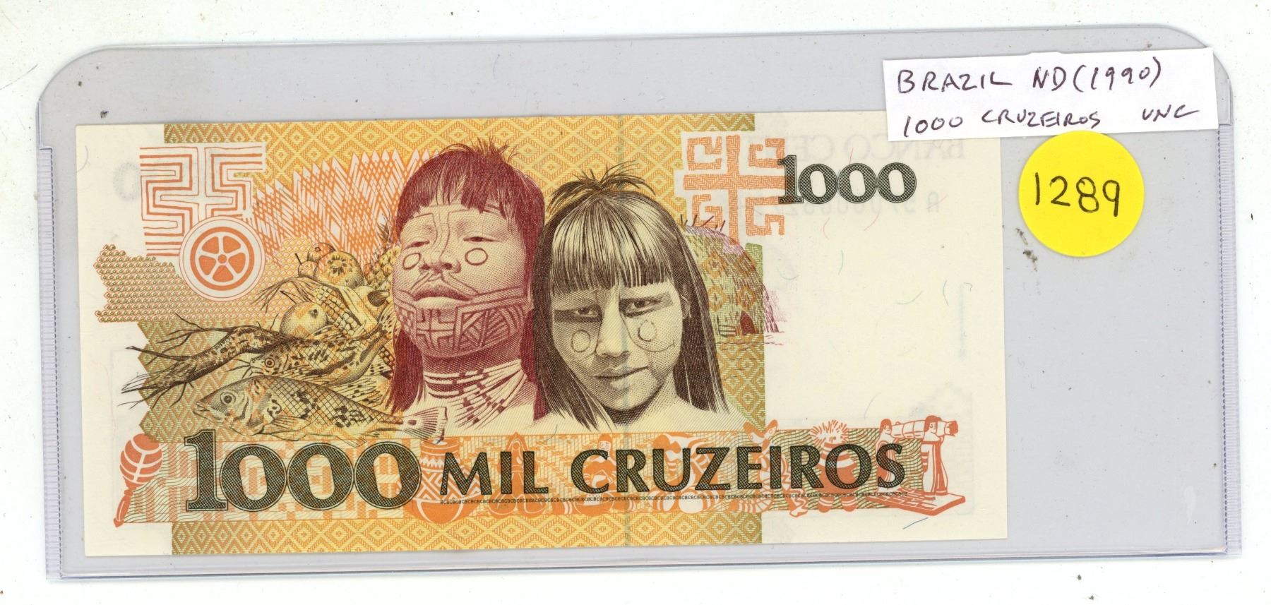 Brazil. ND (1990) 1000 Cruzeiros. Amazonian children. Uncirculated.