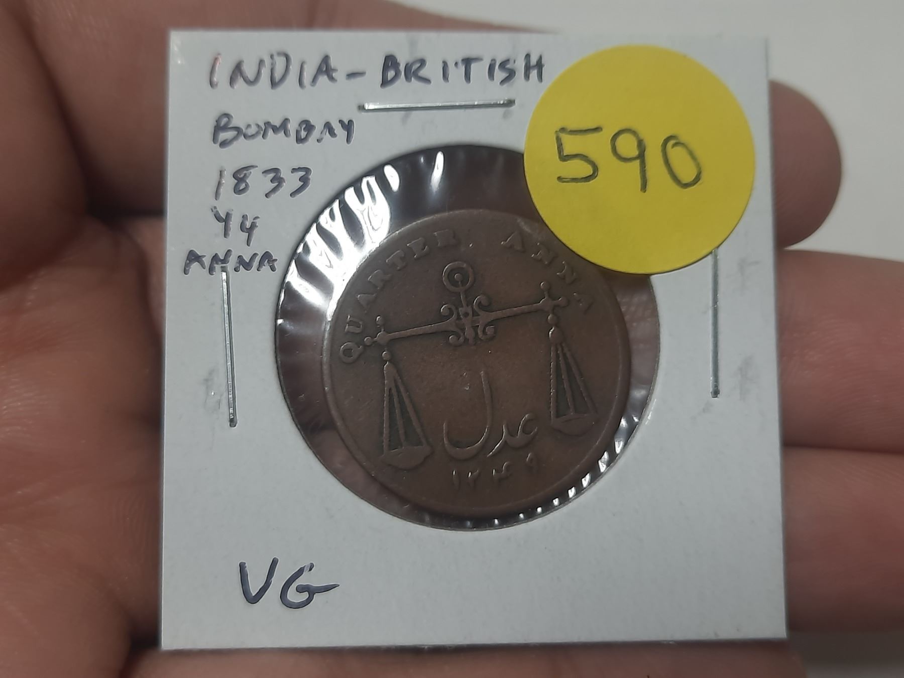 British India. 1833 ¼ Anna. Bombay Mint. VG.