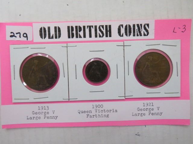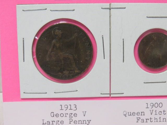 British coins , 1913 & 1921 pennies, 1900 Farthing