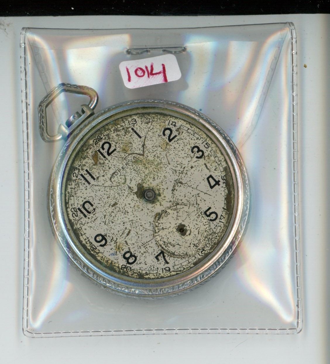 Broken Superva railway pocket watch. No hands or dial.