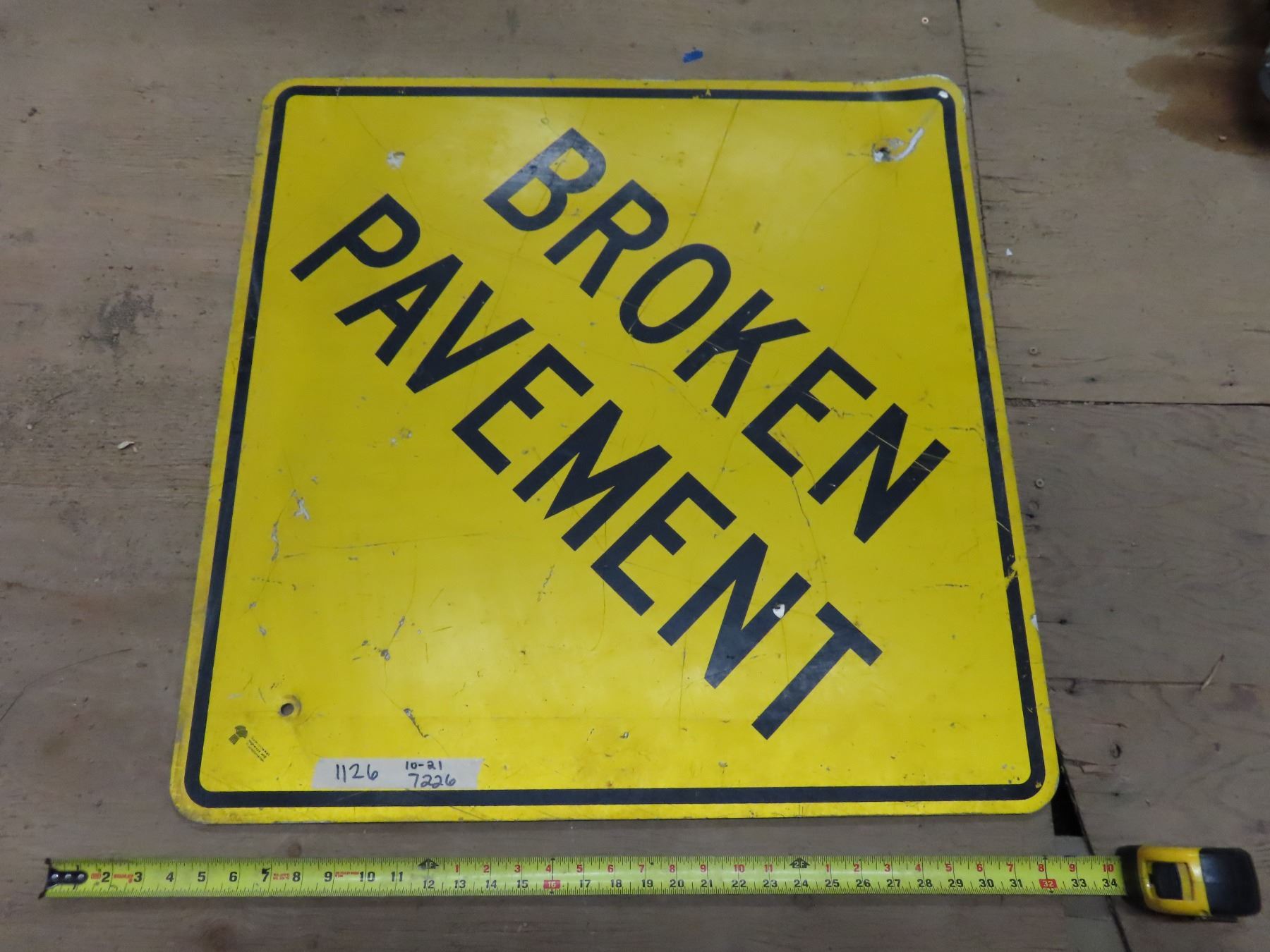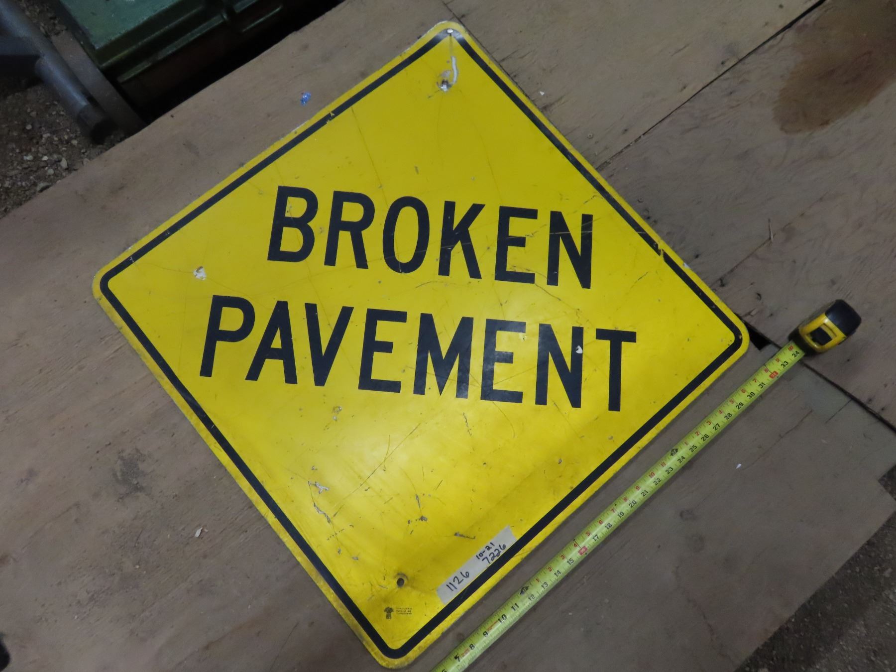 Broken pavement ahead sign
