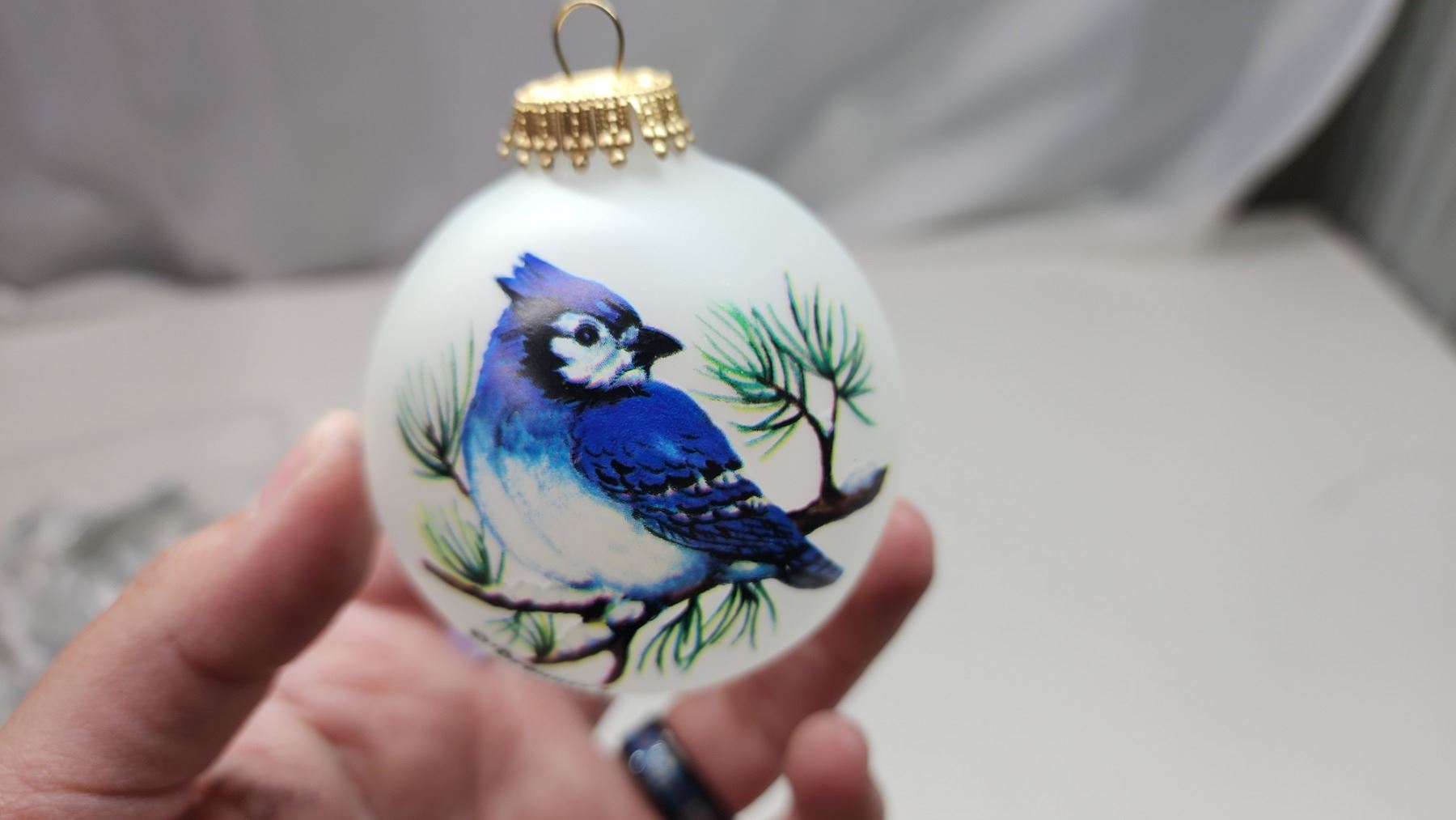 Bronner Glass Hand Decorated Vintage Decoration "Blue Jay" - 3.5"