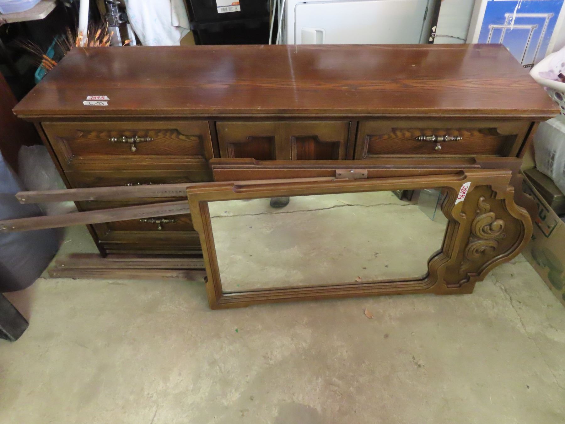 Brown Wooden Dresser, with 2 mirrors 65"x19"x29"
