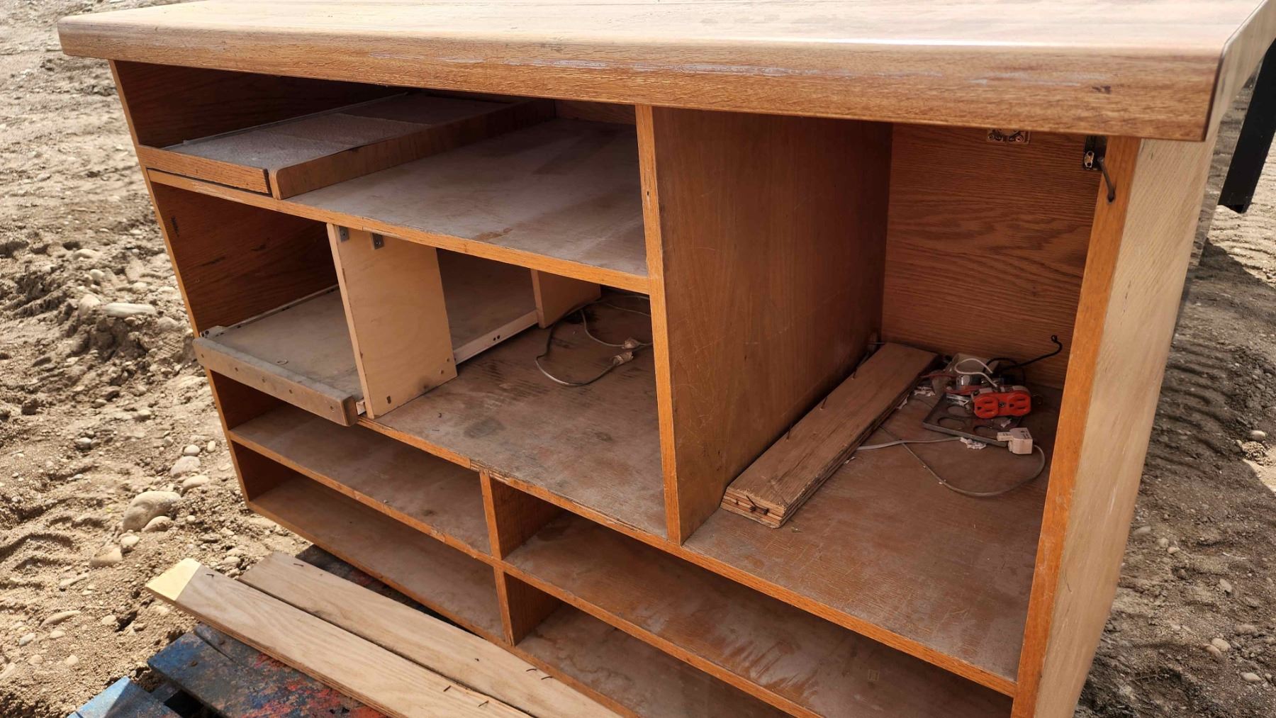 Brown Wooden desk H-2'9" W-4'5" D-1'11"