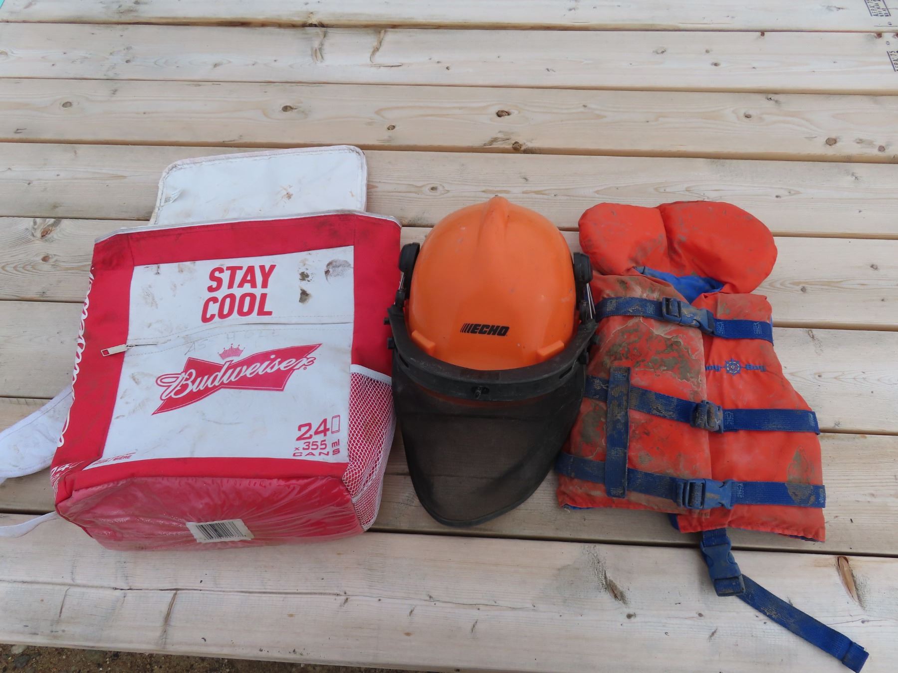 Brush Hard Hat + Child PFD + Budweiser cooler bag