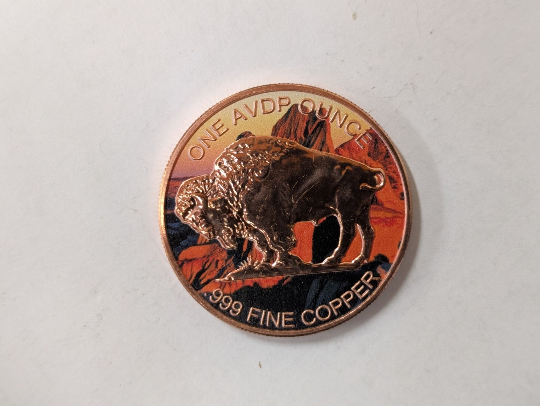Buffalo Designed Copper .999 Fine USA One A.Y.D.P. Ounce Coin