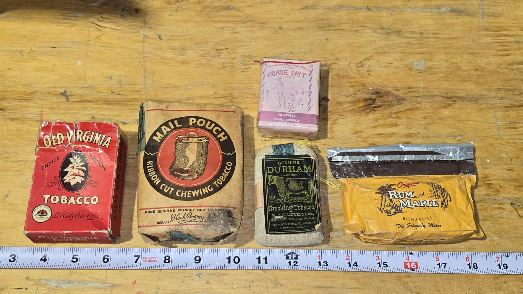 Bull Durham Tobacco, Rum and Maple pouches & Horse Shit cigarettes - sealed