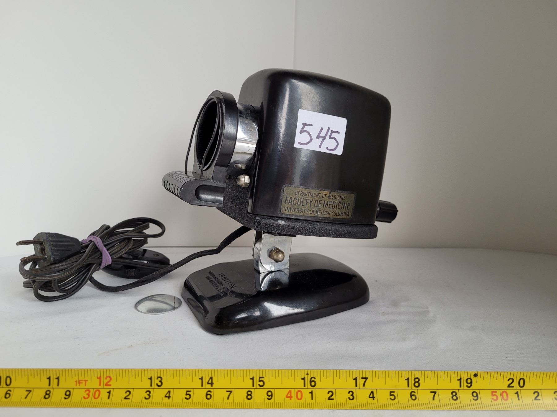 Burton Antique Bakelite Projector, marked Faculty of Medicine, University of British Columbia.
