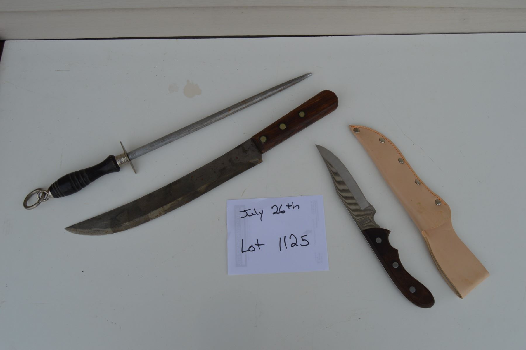Butcher knife ( made in Watertown, Wis ) / Japenese stainless steel knife with sheath / Sharpening stone