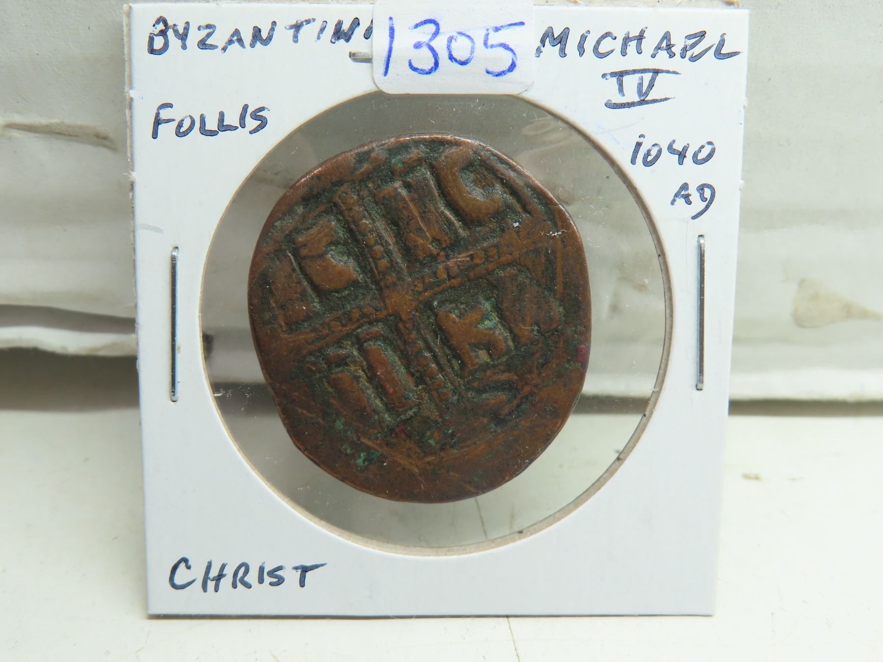 Byzantium. Emperor Michel IV. Follis. Ruled 1040 AD. Depicts Jesus Christ. Fine.