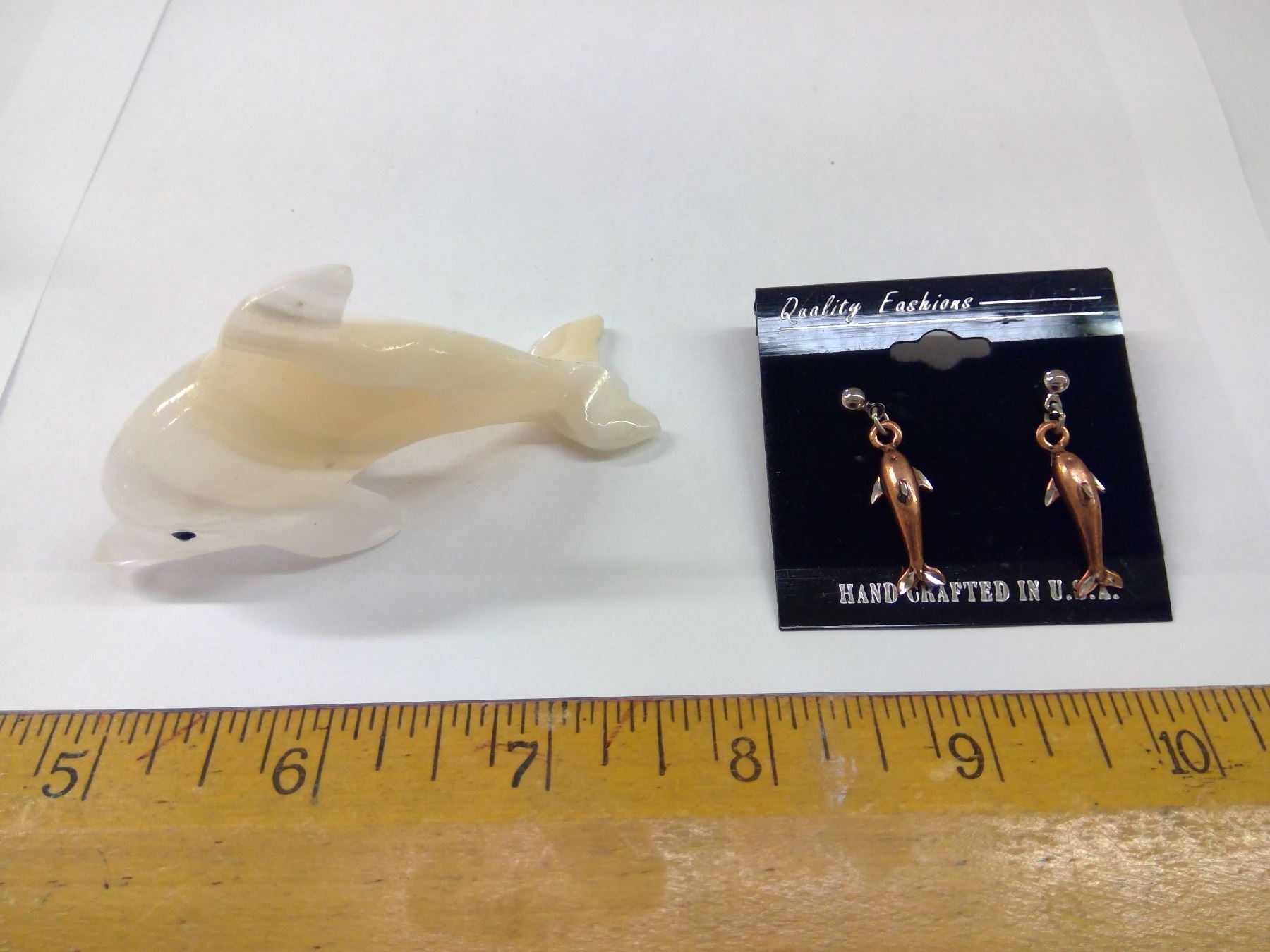 CALCITE CRYSTAL DOLPHIN AND COPPER EARRINGS