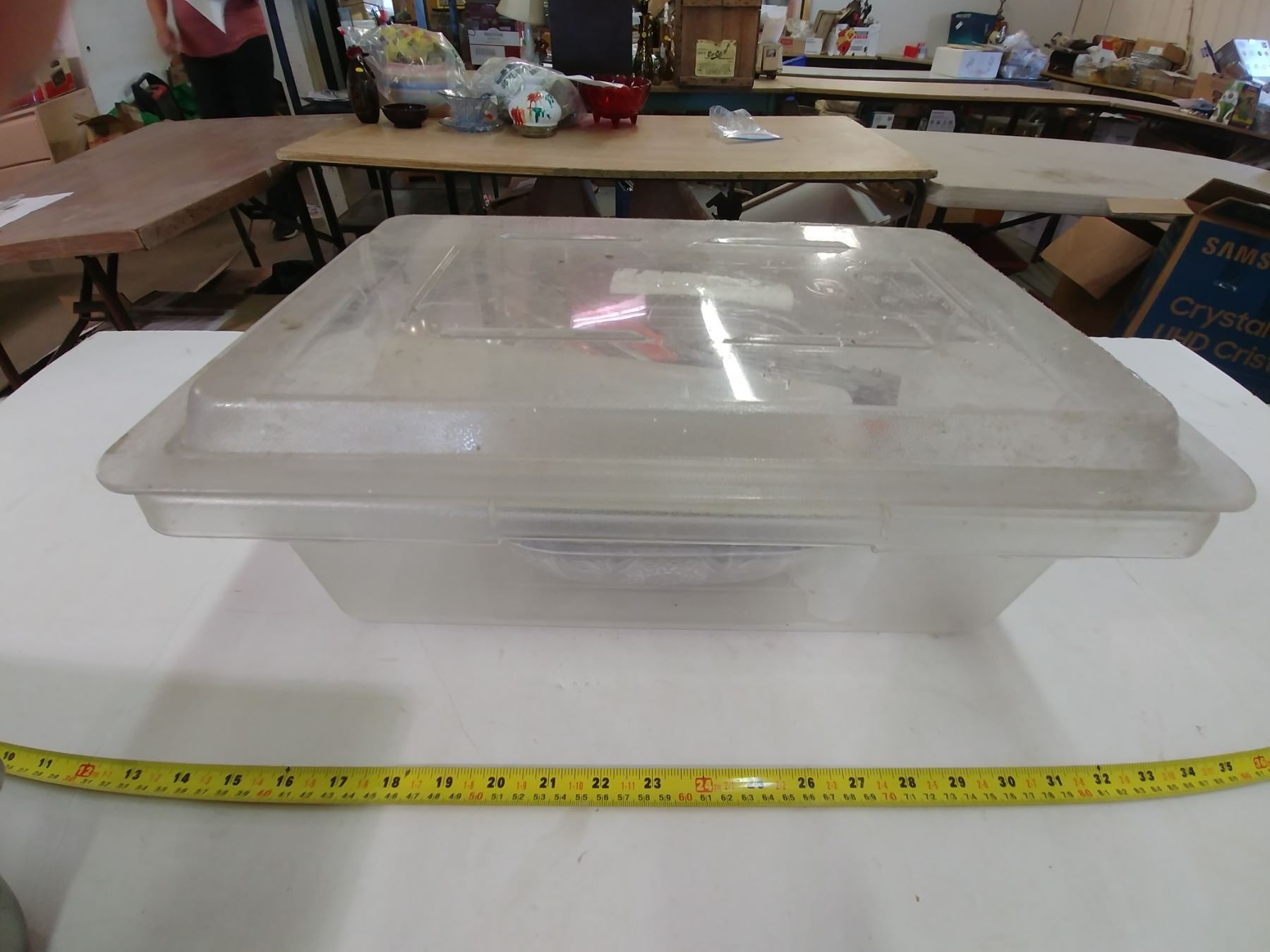cambro box w/lid 3 bowls and misc kitchen utensils