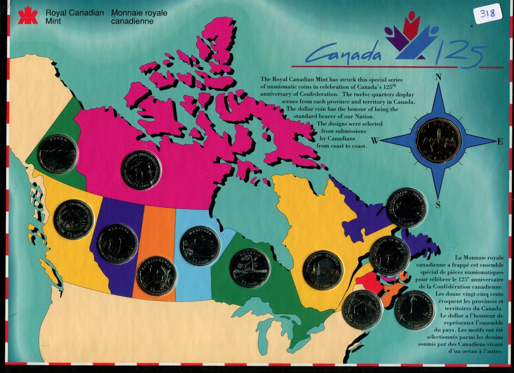 Canada 125 Provincial Quarters w/ Loonie 1867-1992