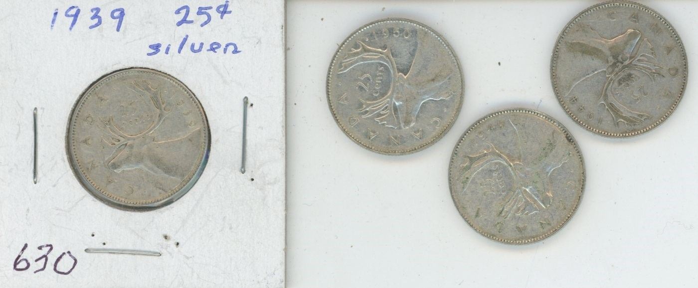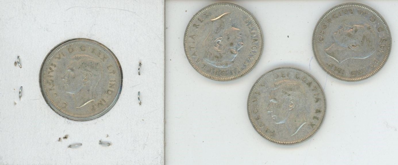 CANADA 1939, 1950, 1949, 1944 25 CENT SILVER GEORGE VI
