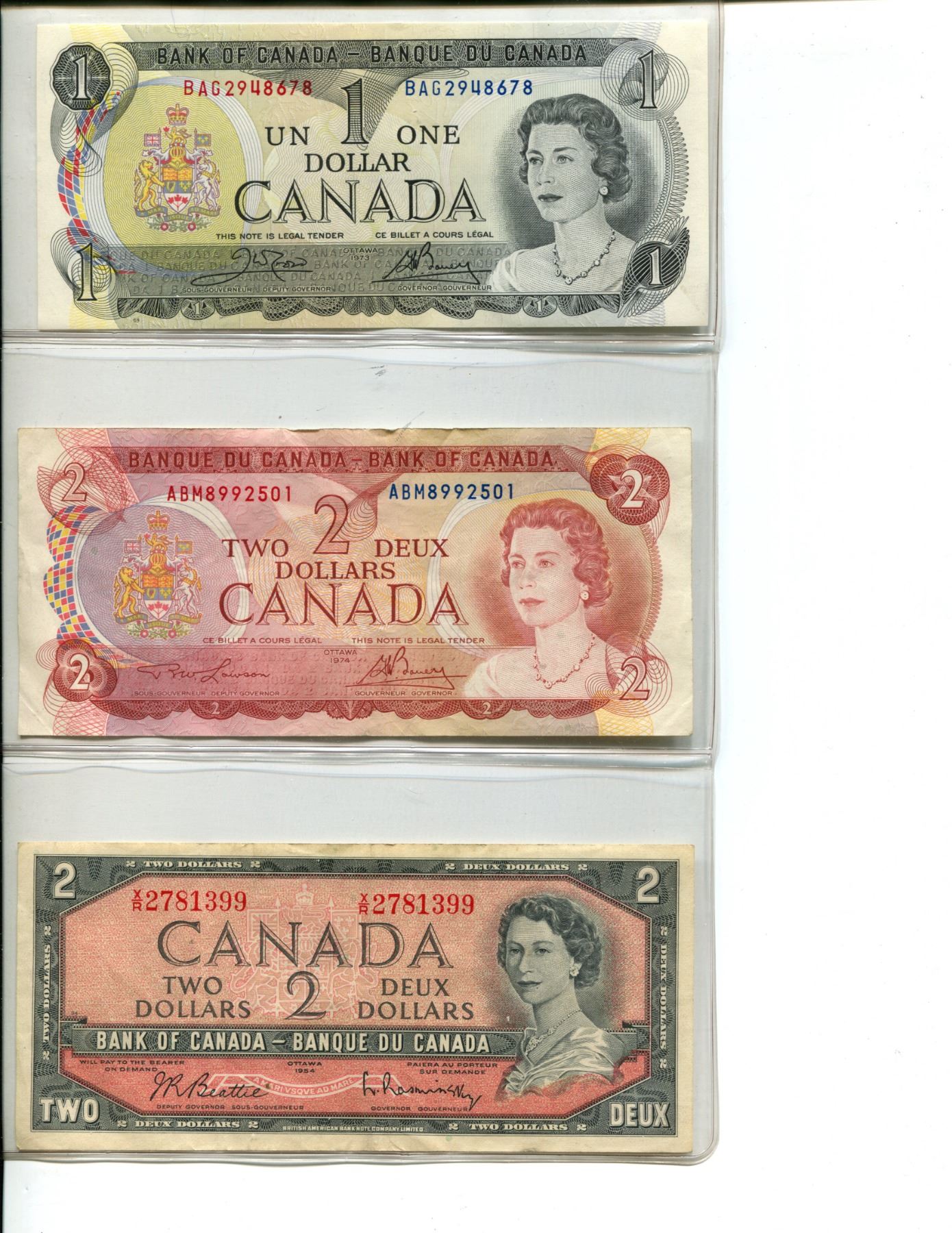 CANADA 1973 ONE DOLLAR, 1974 TWO DOLLAR, 1954 TWO DOLLAR