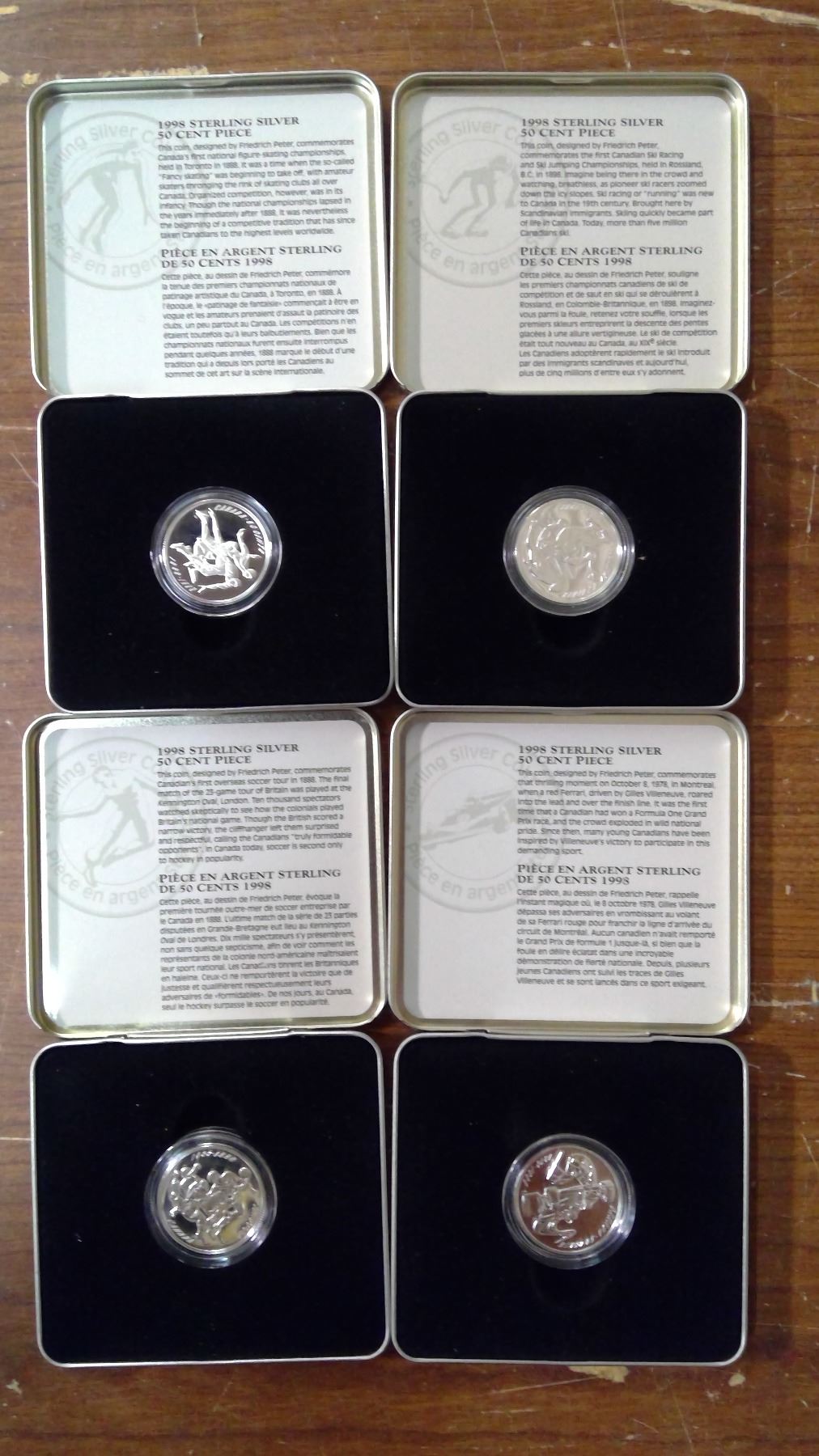 CANADA 1998 SPORT SERIES (4) 50CENT COINS IN METAL CONTAINERS