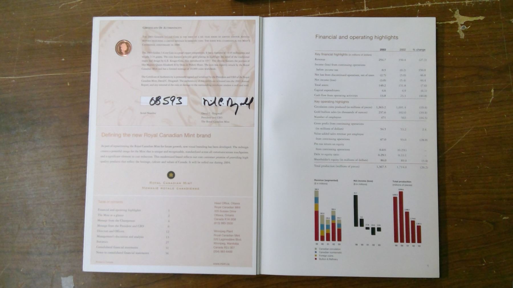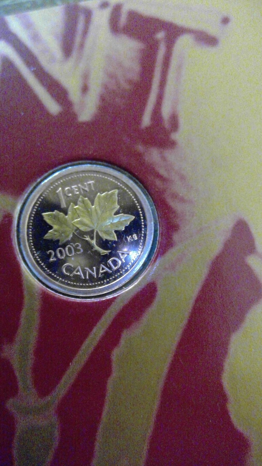 CANADA 2003 ANNUAL REPORT FROM THE ROYAL MINT, PENNY WITH GOLD ON MAPLE LEAVES