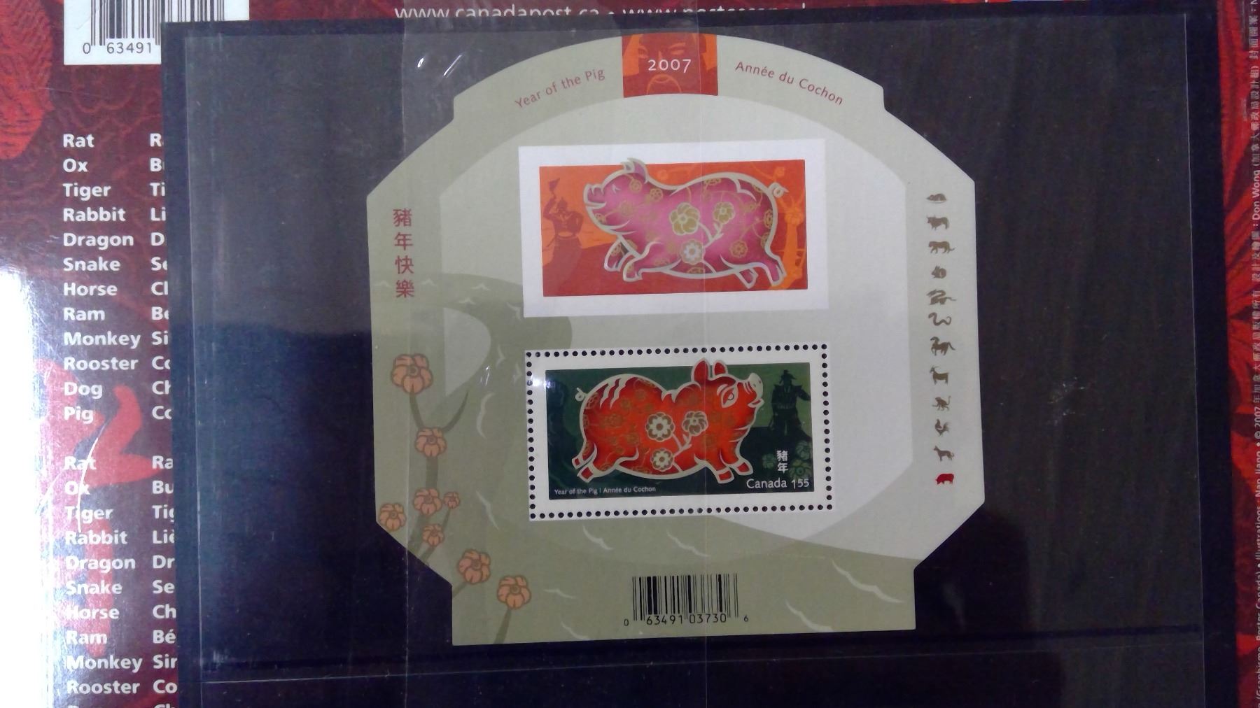 CANADA 2007 YEAR OF THE PIG STAMPS HONG KONG, CHINA