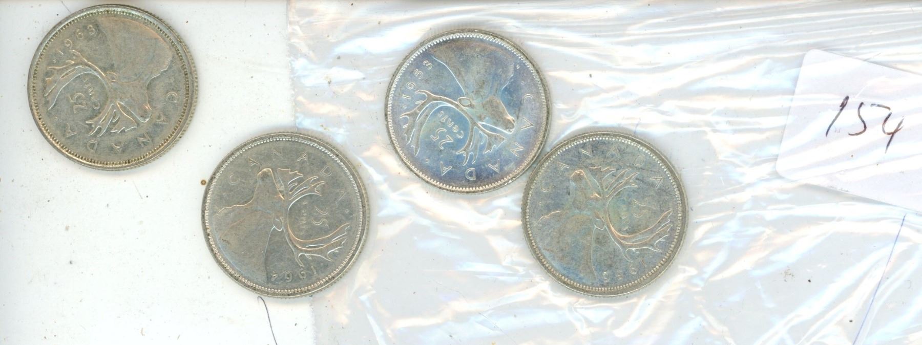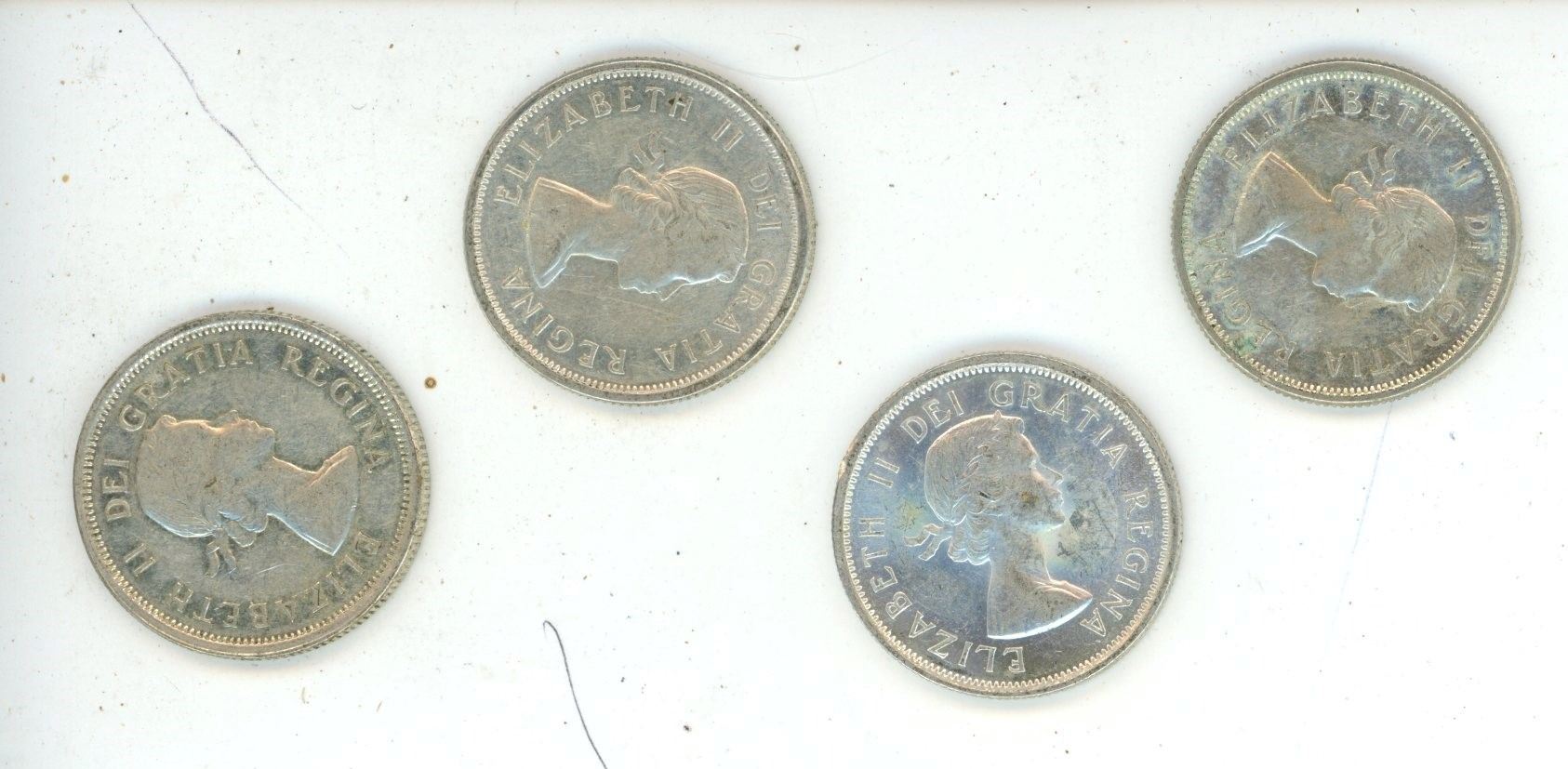 CANADA 25 CENT SILVER ’53; ’56; ’63; ’64 ELIZABETH II
