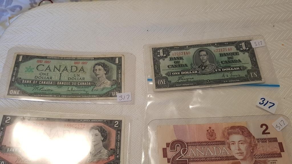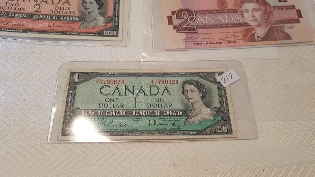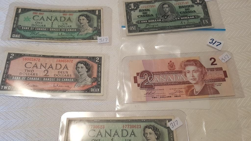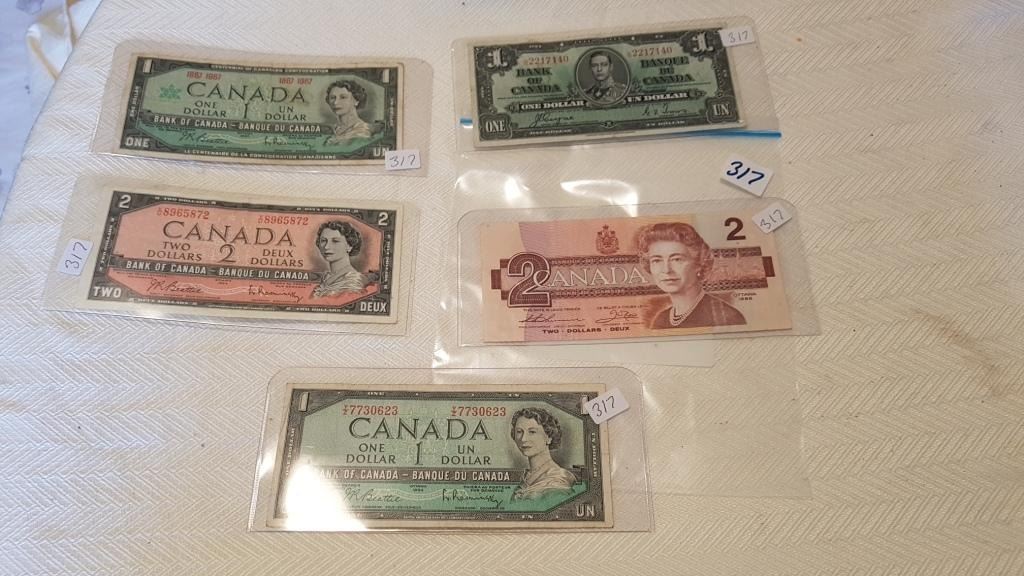 CANADA 5 DIFFERENT PAPERS BILLS 1937, 54, 67, 86