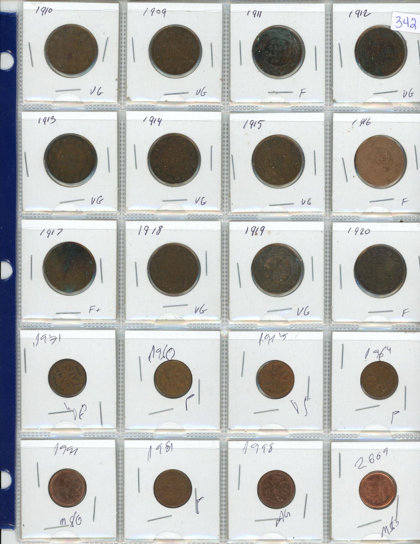 CANADIAN PENNIES. 1910-2009 (20 COINS)
