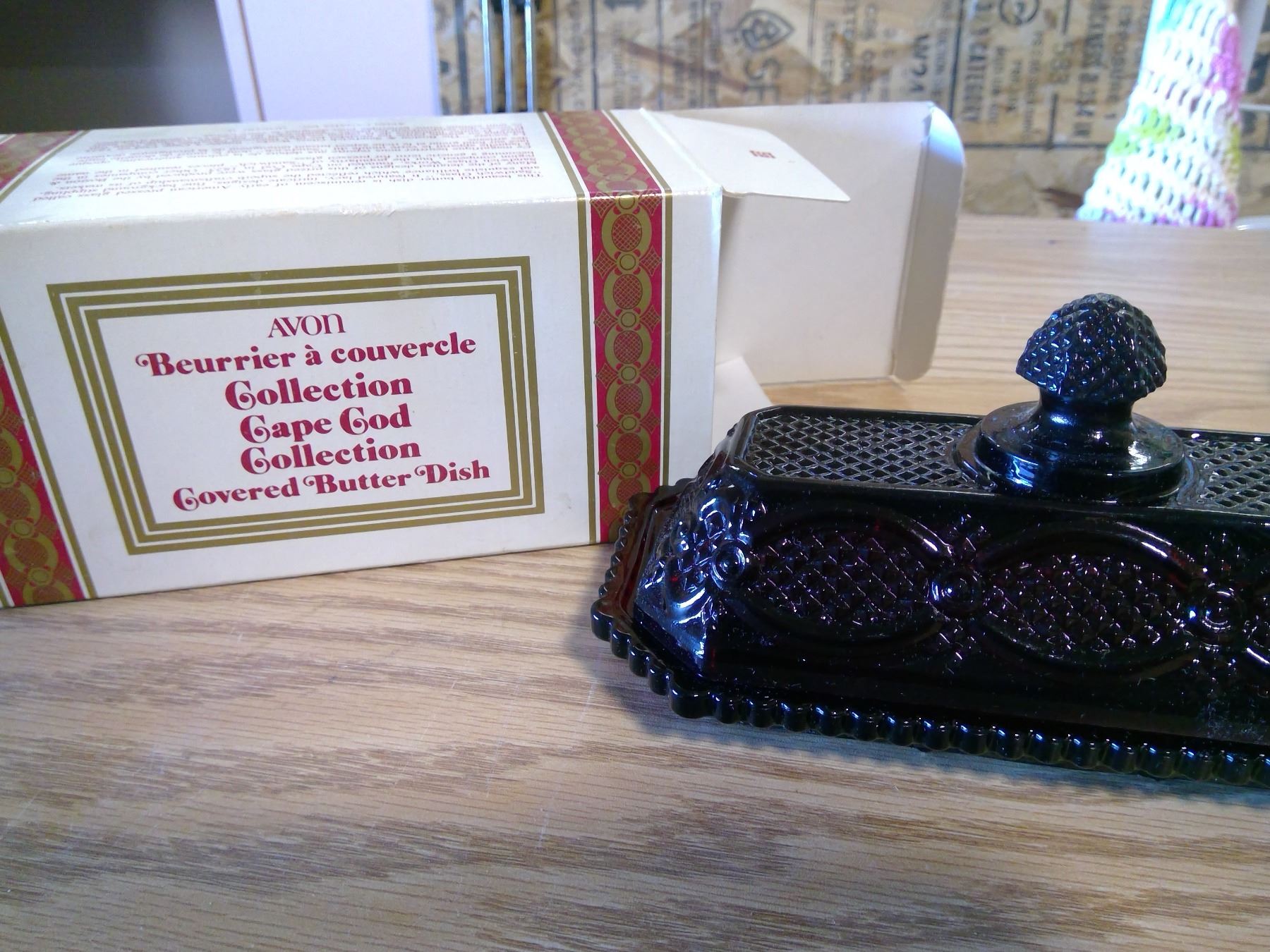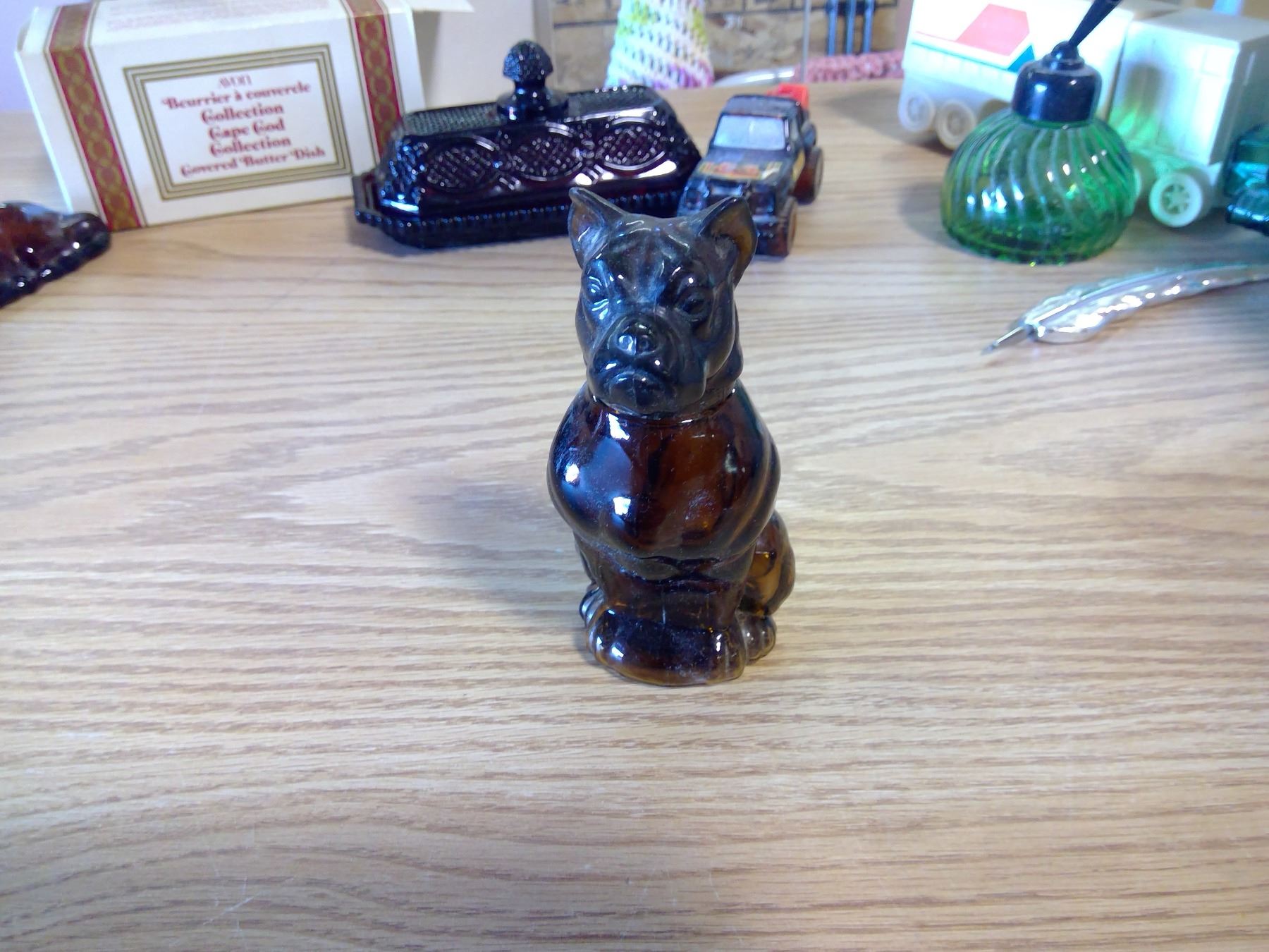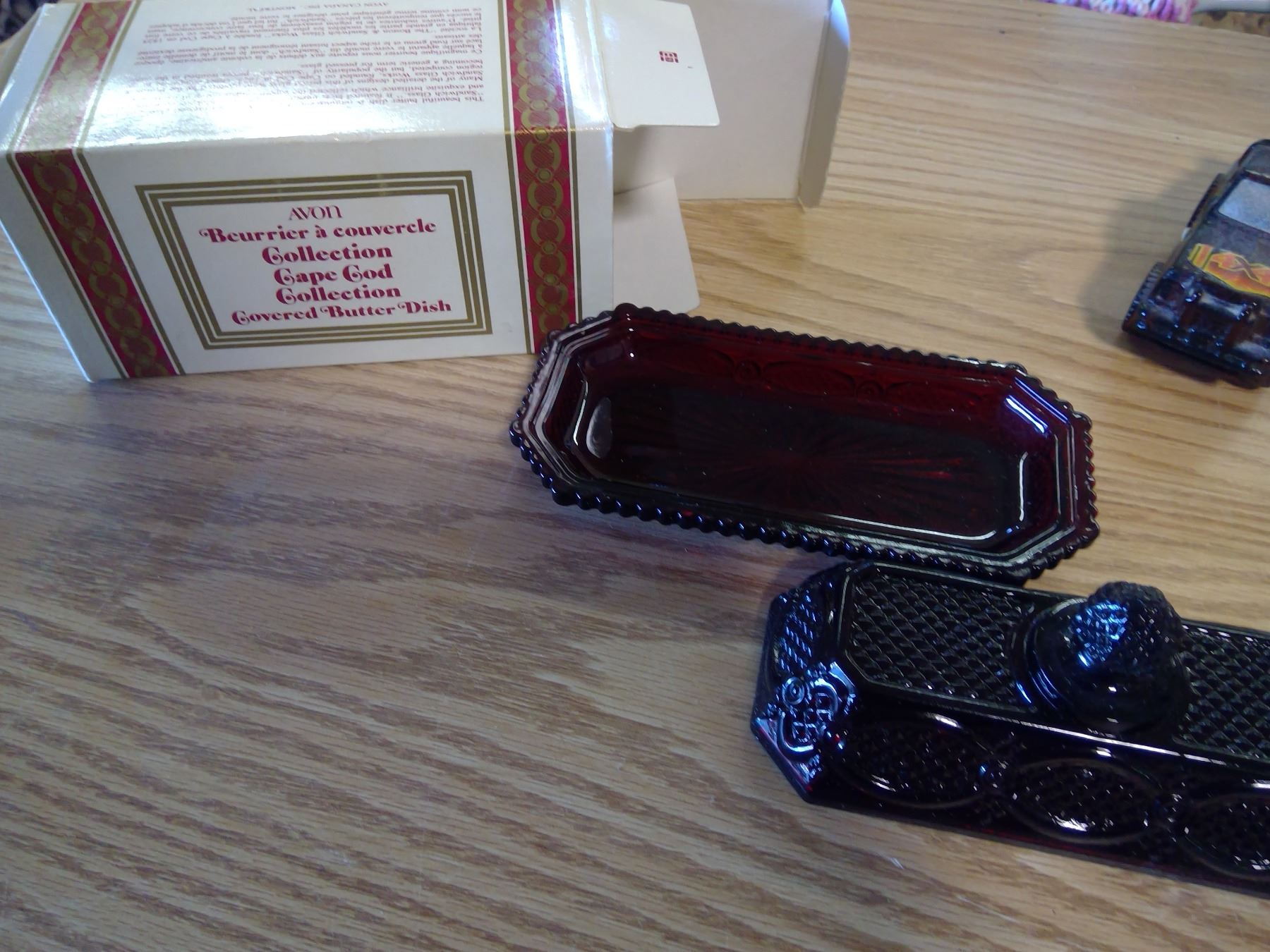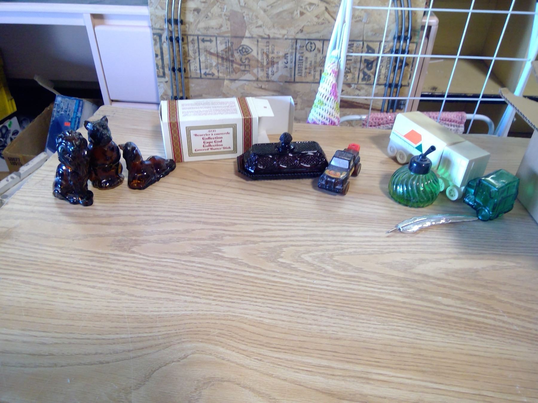 CAPE GOD COVERED BUTTER DISH+ 3 UNIQUE PERFUME BOTTLES AVON GLASS+ECT