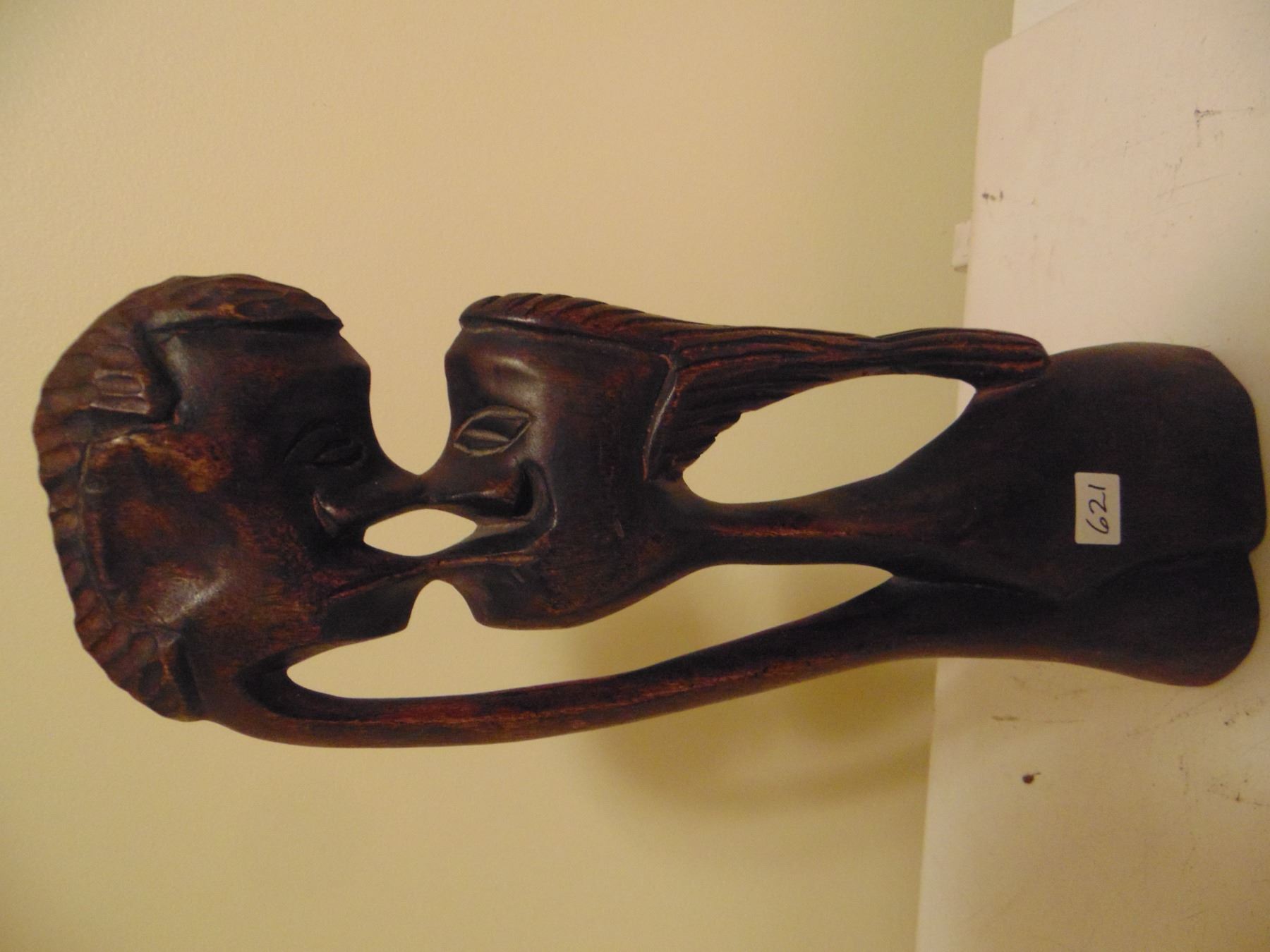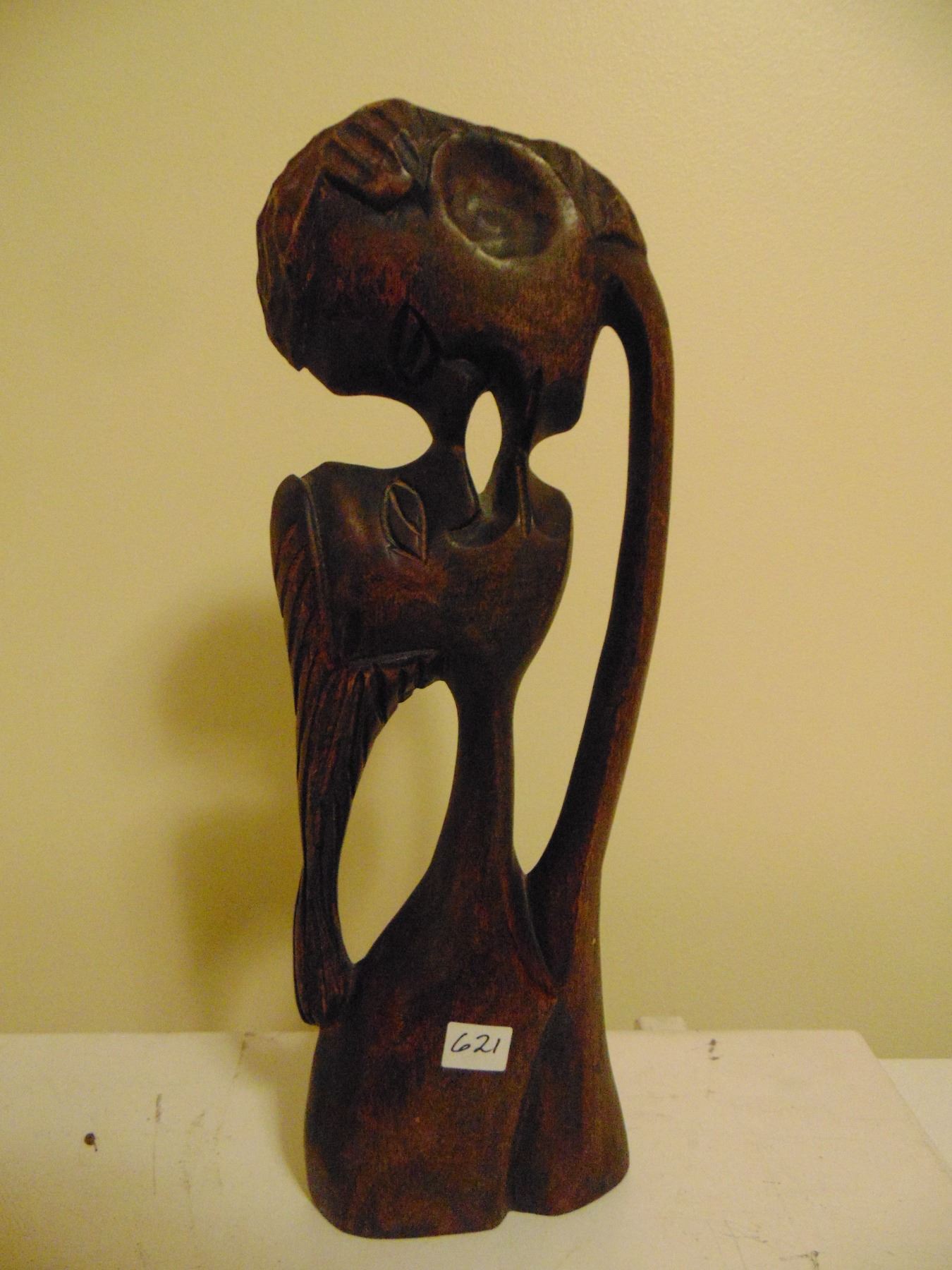 CARVED MAN/WOMAN KISSING SCULPTURE (16.5" TALL)