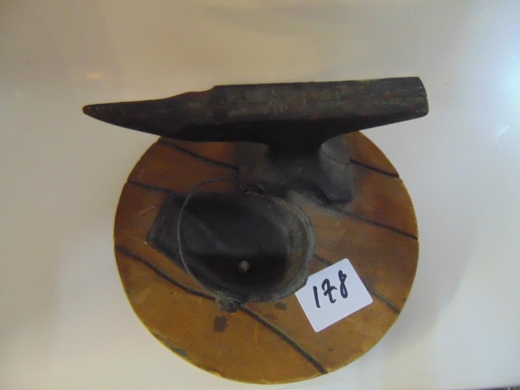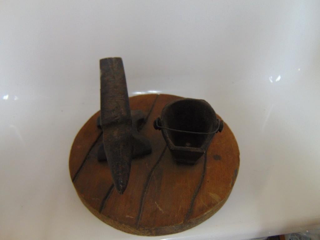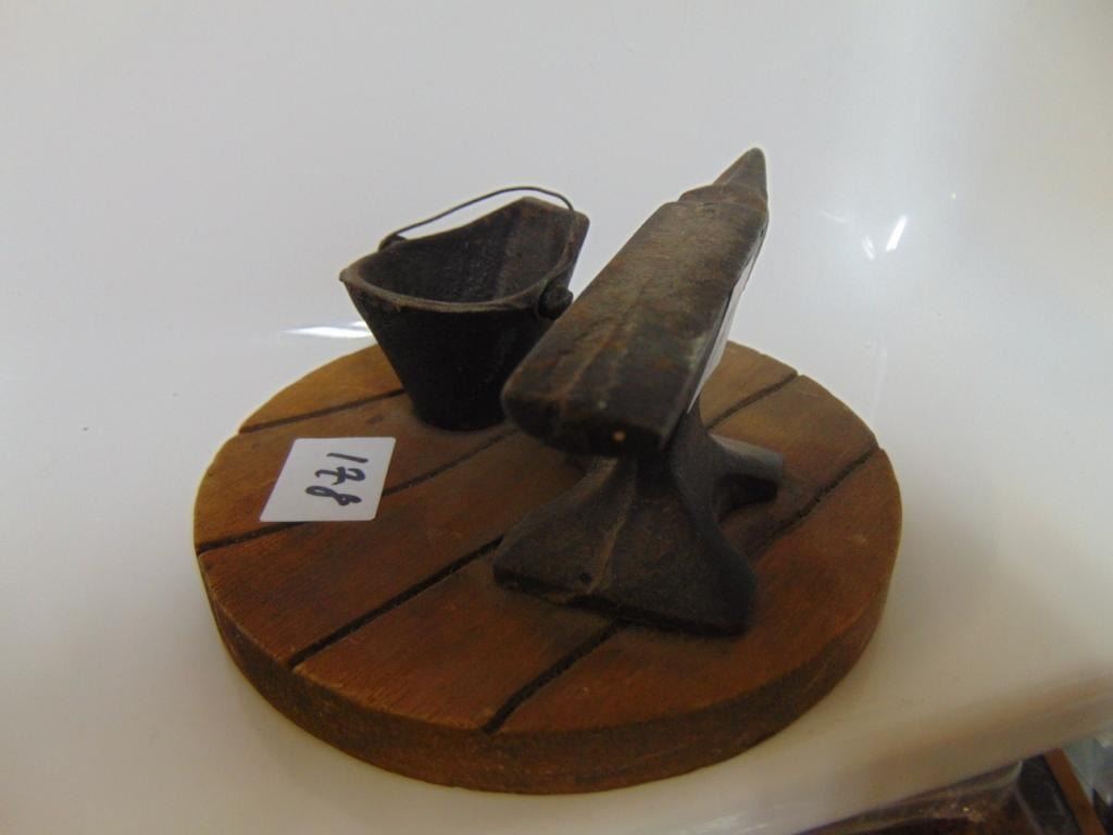 CAST IRON 1-3" ANVIL & COAL PAIL ON 5" BOARD