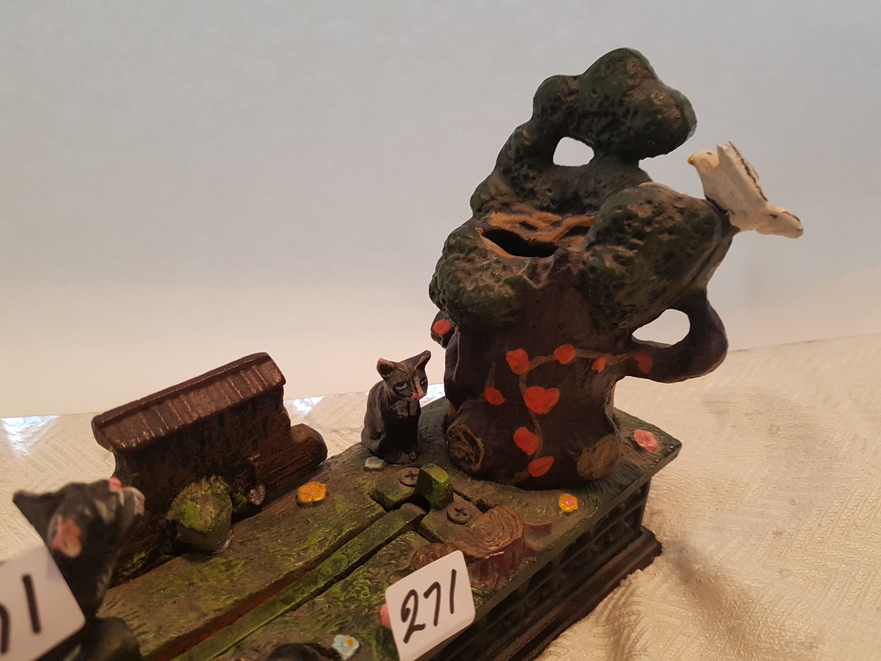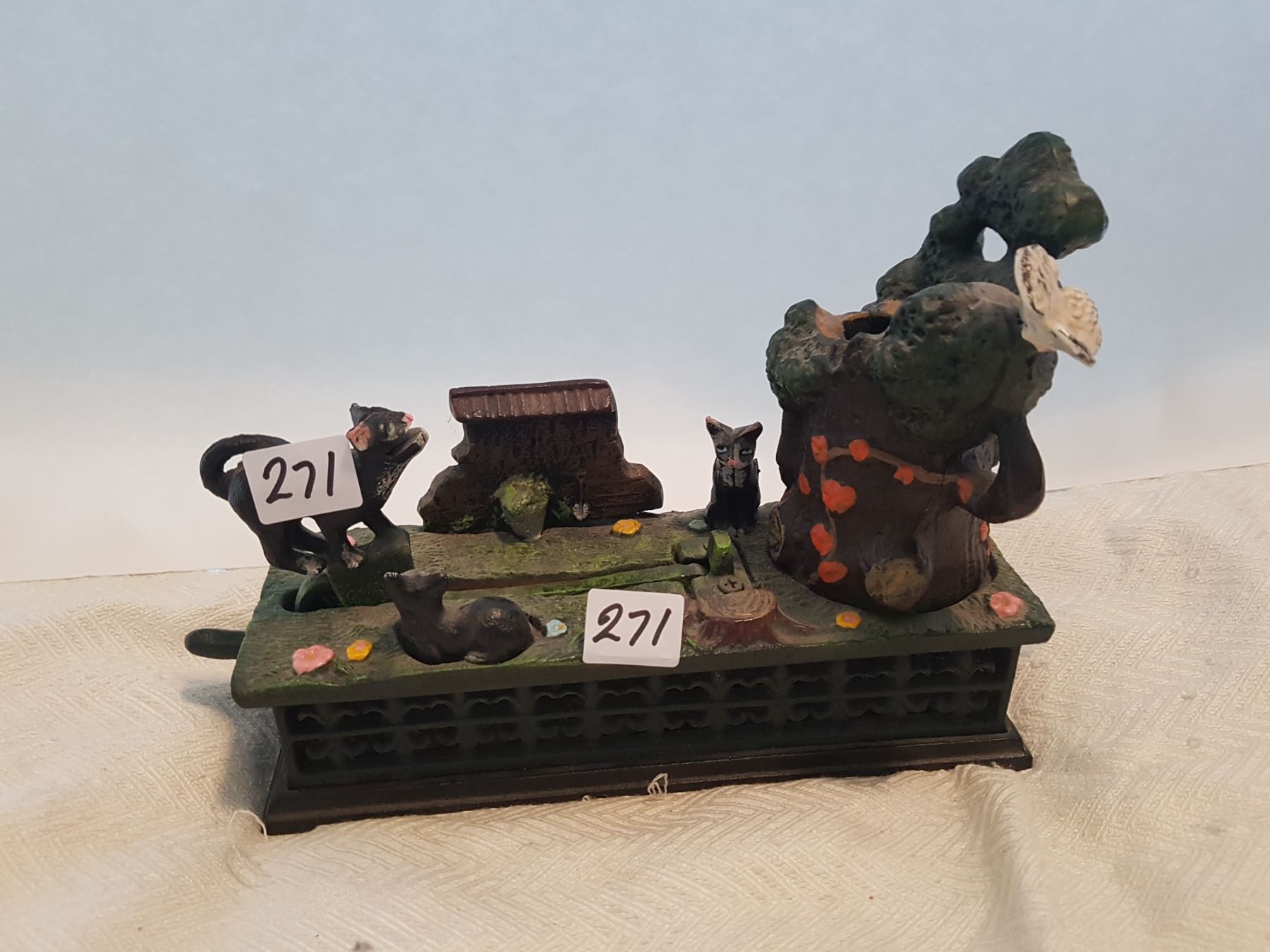 CAST IRON MECHANICAL PIGGY BANK (JUMPING CAT)